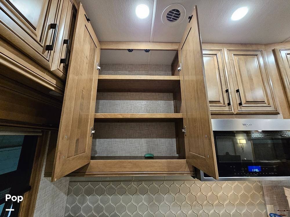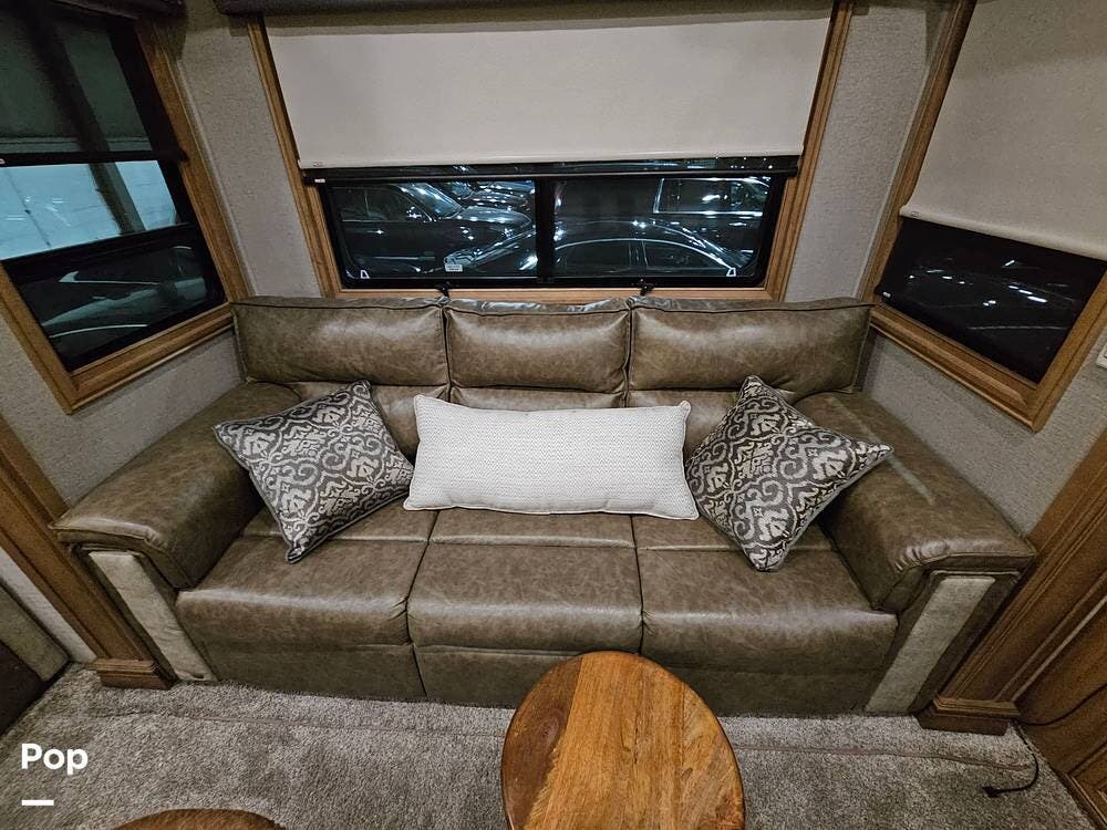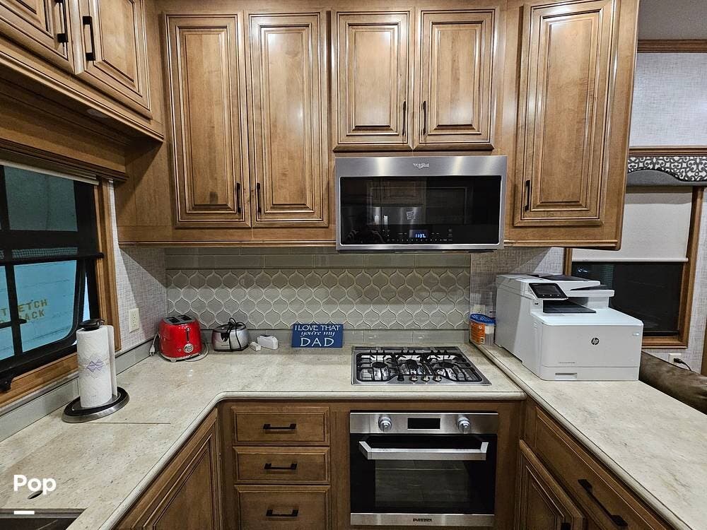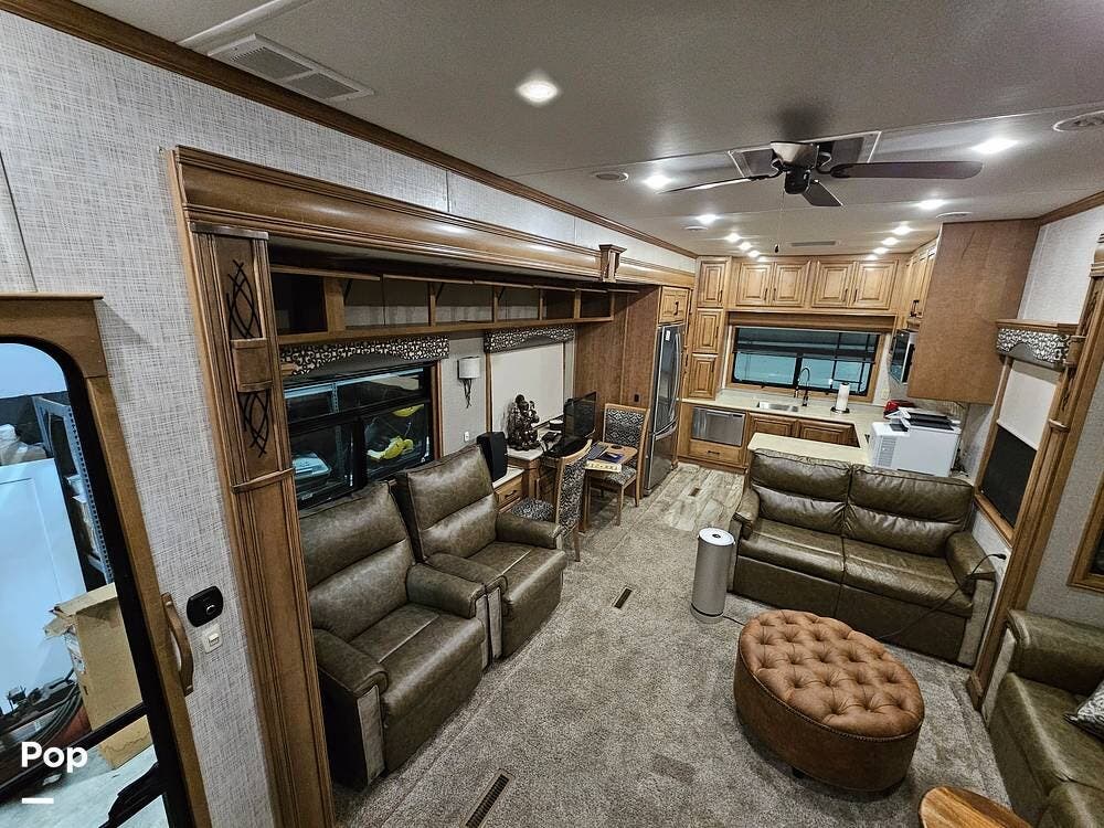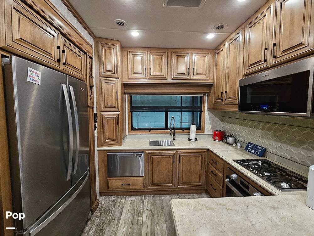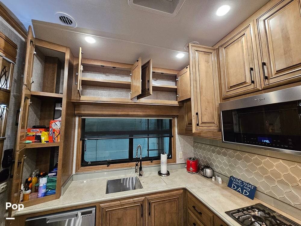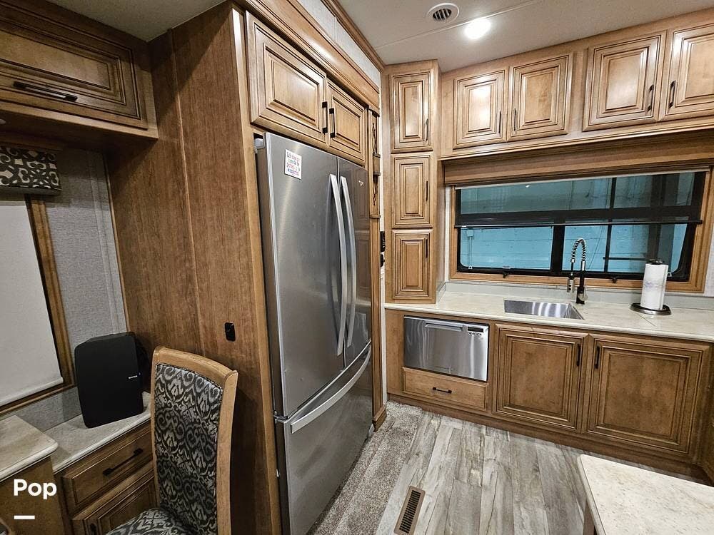 This exquisite residence is available for those seeking comfort and convenience. Boasting a residential package, this fifth wheel brings the warmth of home to your travels.