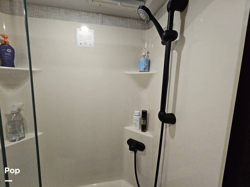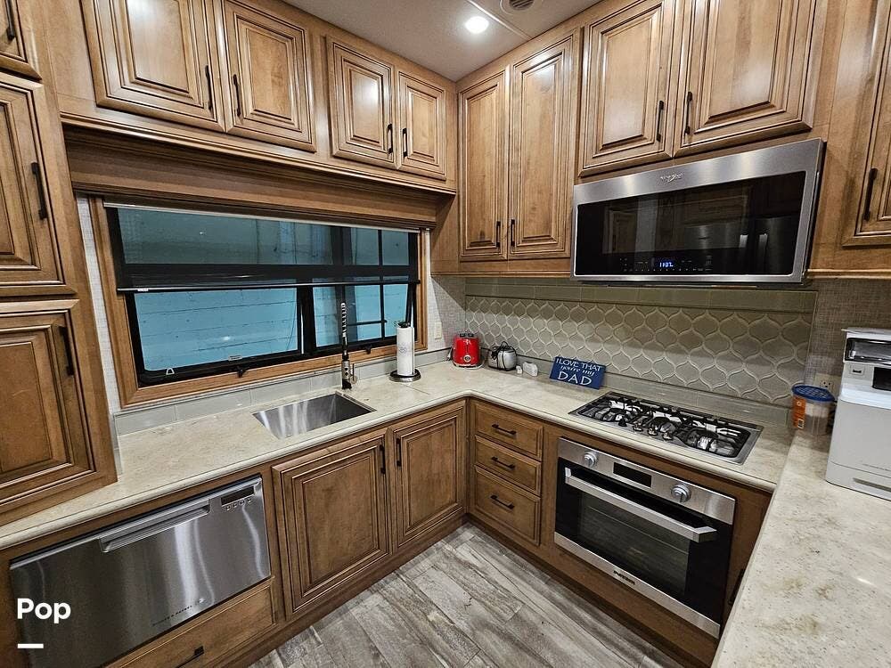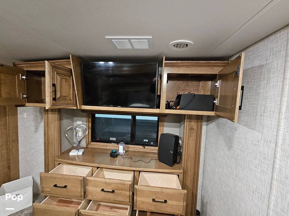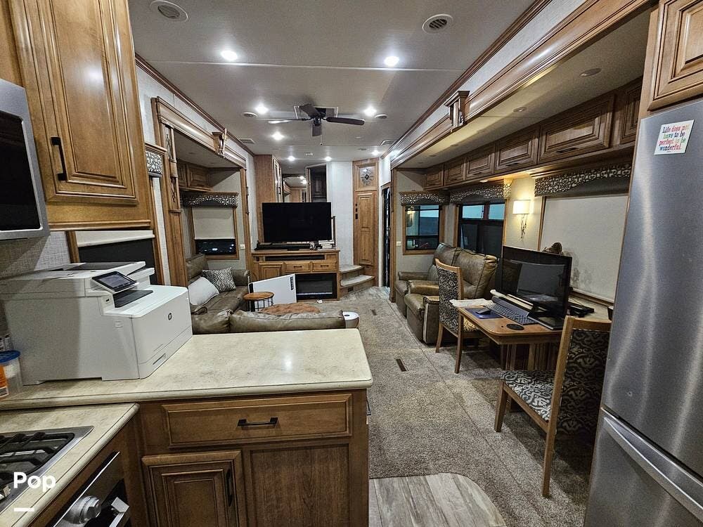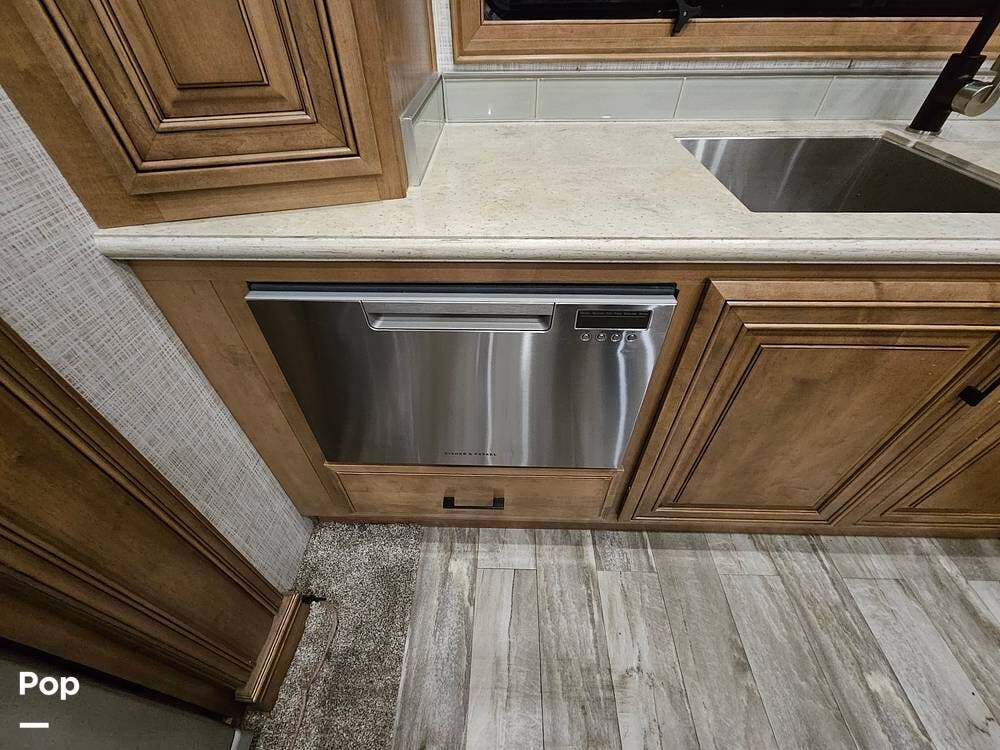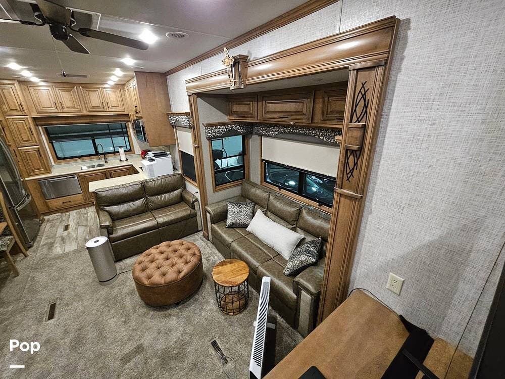 This exquisite residence is available for those seeking comfort and convenience. Boasting a residential package, this fifth wheel brings the warmth of home to your travels.