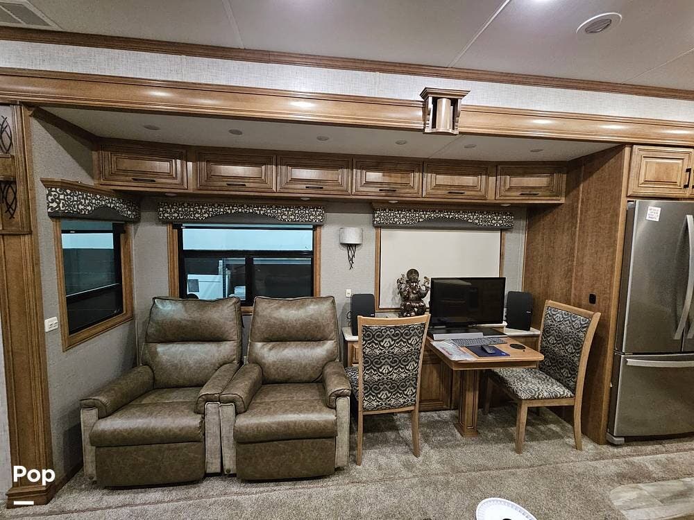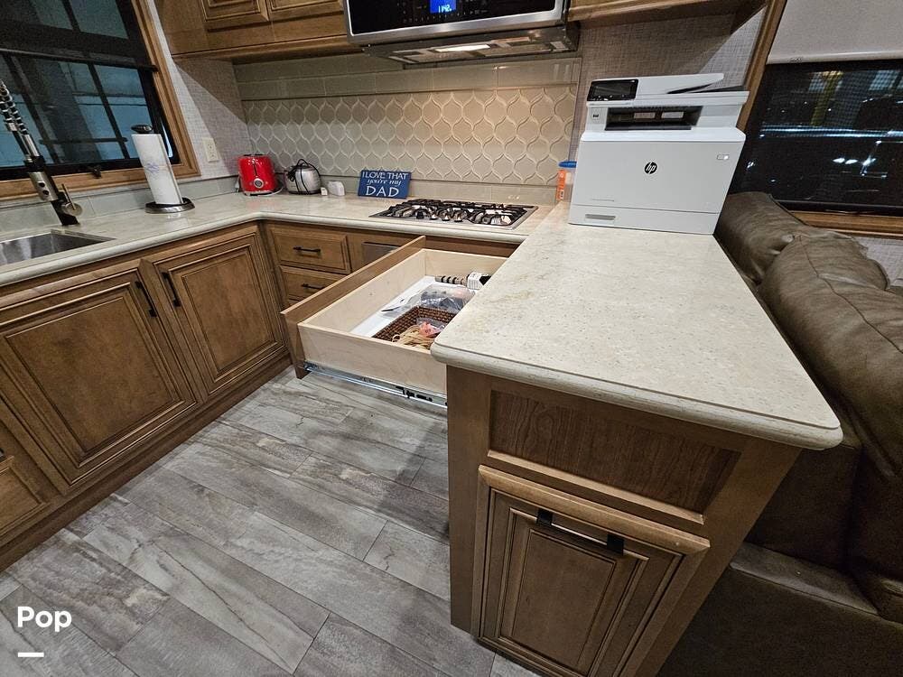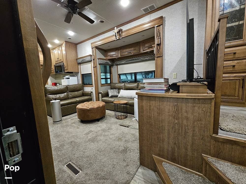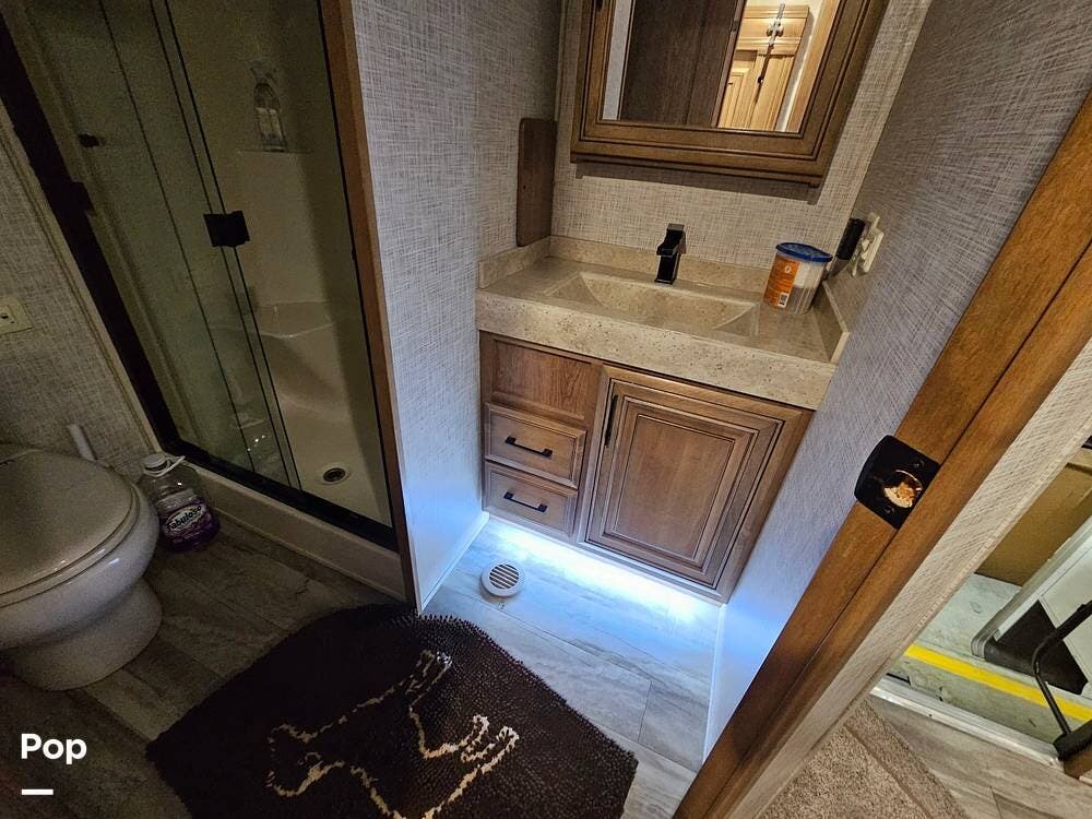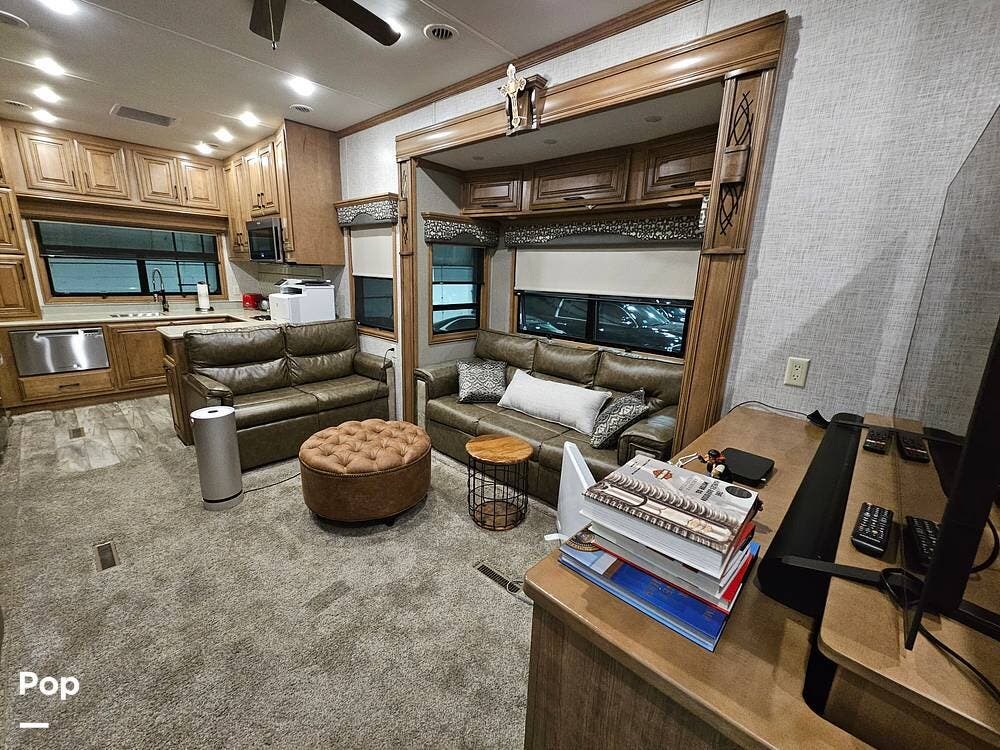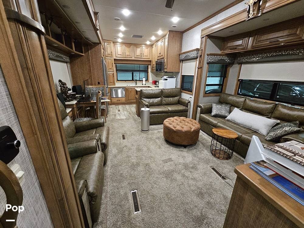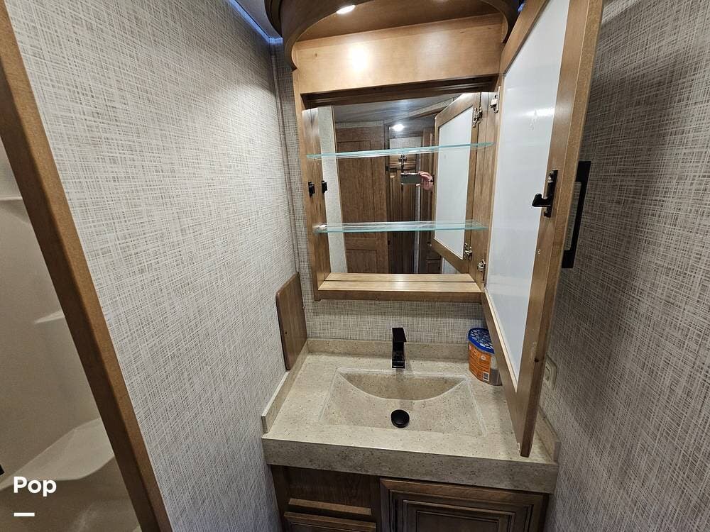 This exquisite residence is available for those seeking comfort and convenience. Boasting a residential package, this fifth wheel brings the warmth of home to your travels.