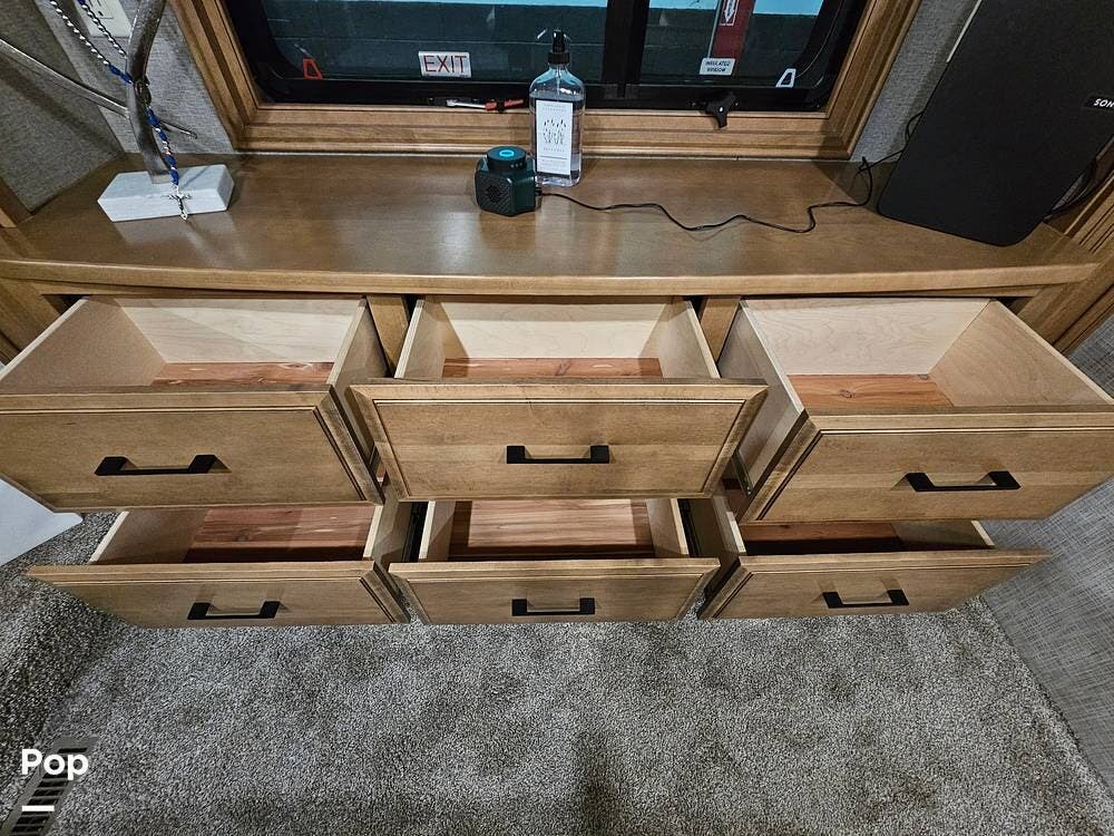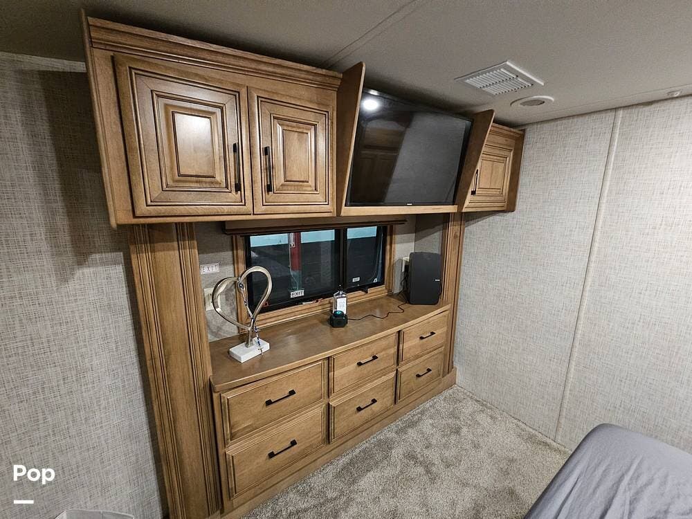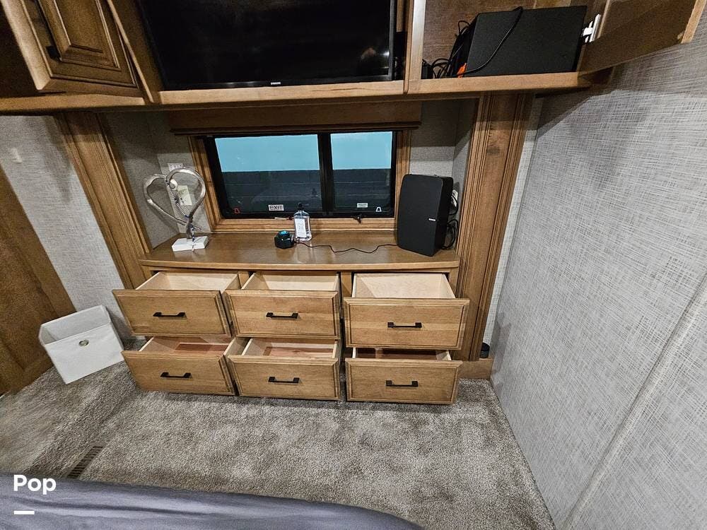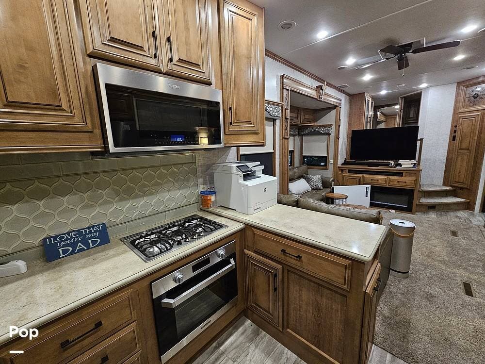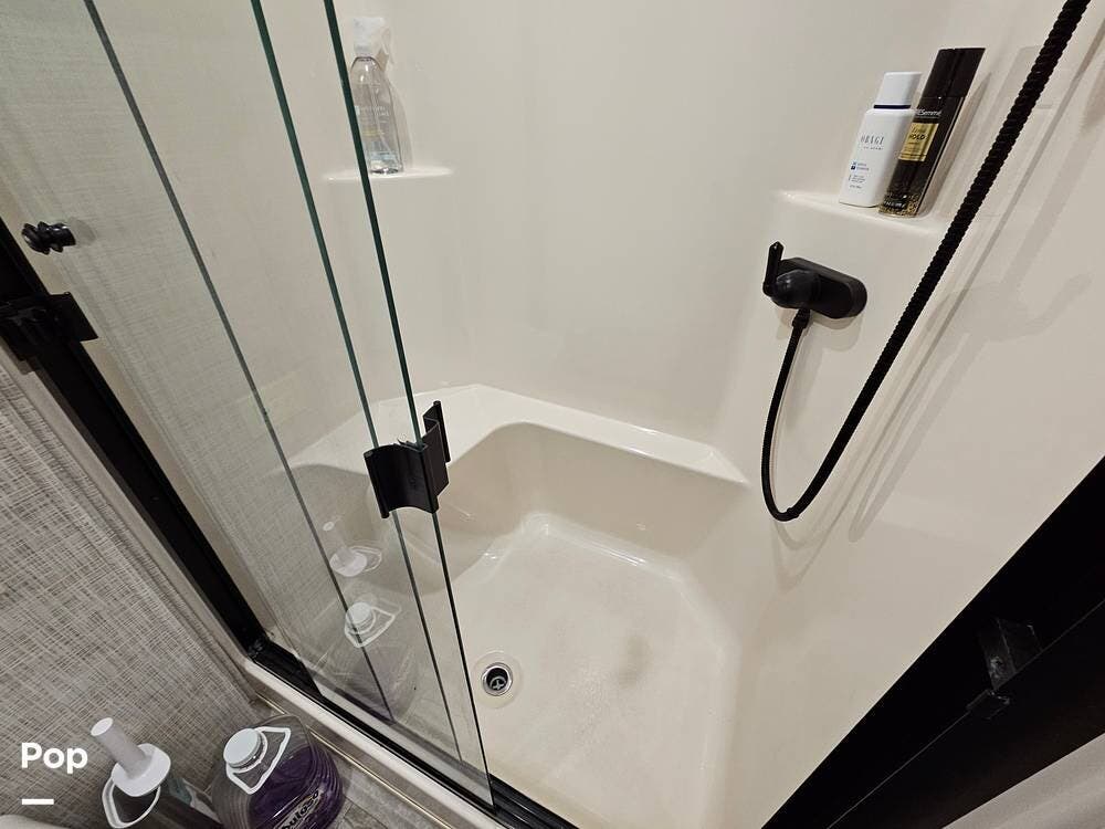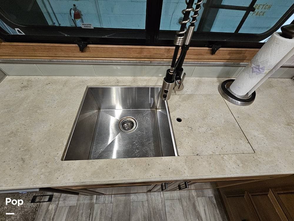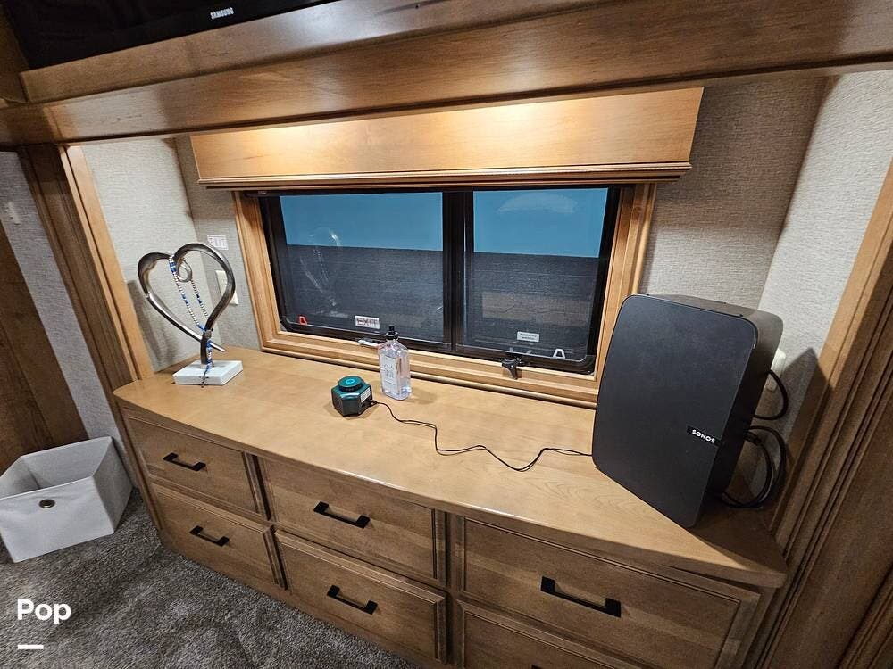 This exquisite residence is available for those seeking comfort and convenience. Boasting a residential package, this fifth wheel brings the warmth of home to your travels.
