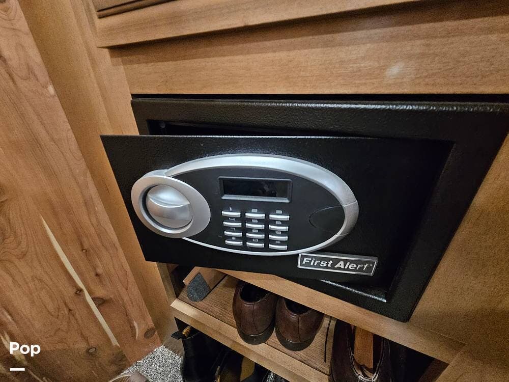 The mattress in the bedroom is a queen, but the platform can accommodate a king-size mattress for a restful night's sleep, and the master bedroom closet features a built-in safe for added security.