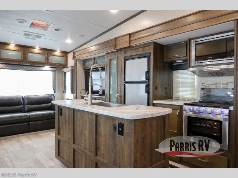 With each Astoria fifth wheel by Dutchmen, you'll enjoy the iN-Command Remote Operating System with a touchscreen that allows you to control all of your unit's functions in one convenient location. You can relax just like you do at home since these models feature the tallest bedroom height in the mid-profile fifth wheel segment and a residential mattress. The Astoria also has all your entertainment needs covered with an LED HDTV, a Bluetooth stereo, and USB charging ports to keep all of your gadgets charged and ready to go.