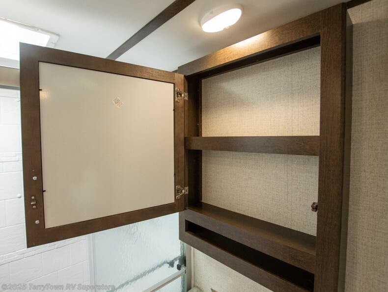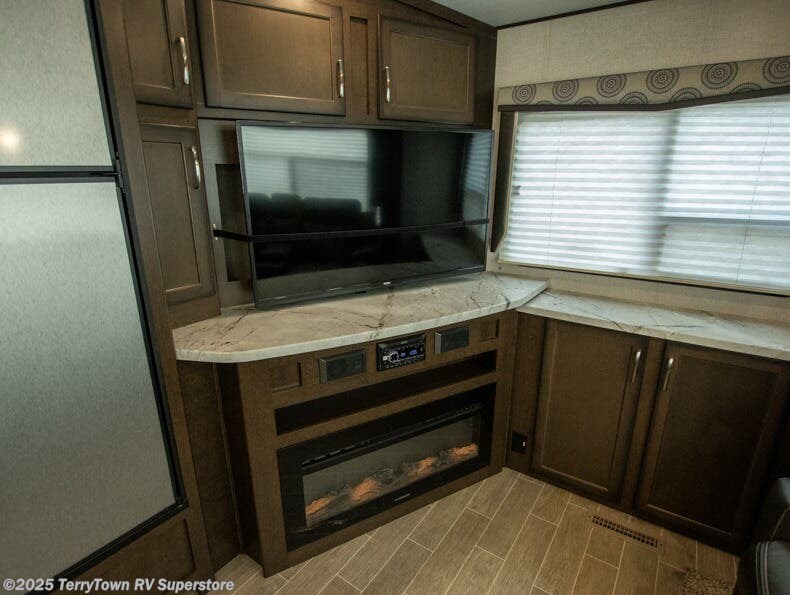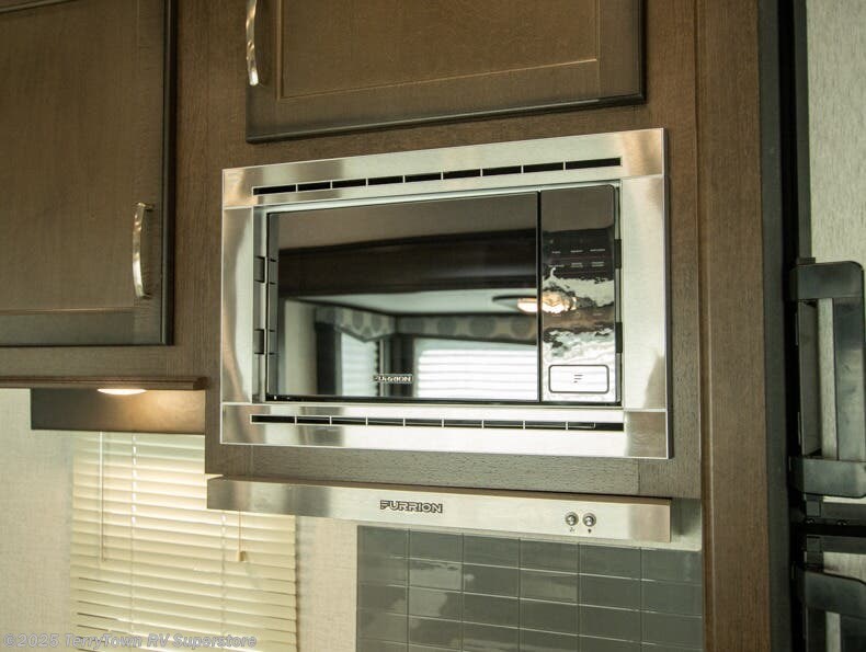 Get ready for fun and adventure with this Atlas fifth wheel! You'll enjoy a secluded sleeping space with the queen-size bed in the front private bedroom, and everyone will be grateful to find a full bathroom with a skylight above the tub/shower to get ready in each morning. Sit down with a hot breakfast and cup of coffee at the booth dinette and store any leftovers in the 8 cubic foot refrigerator.