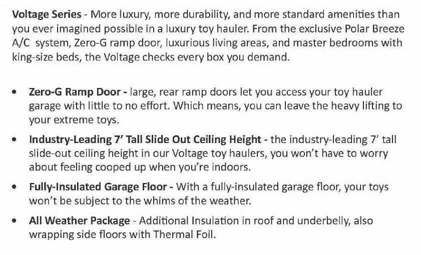 Looking to buy a 2020 Dutchmen Voltage Toy Hauler RV?