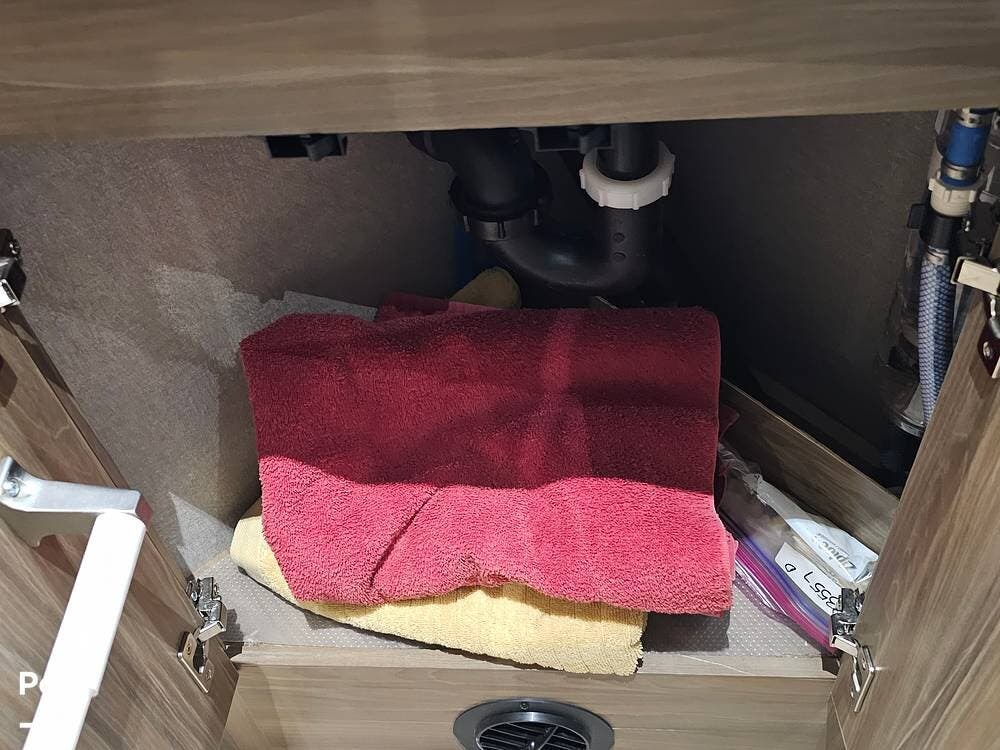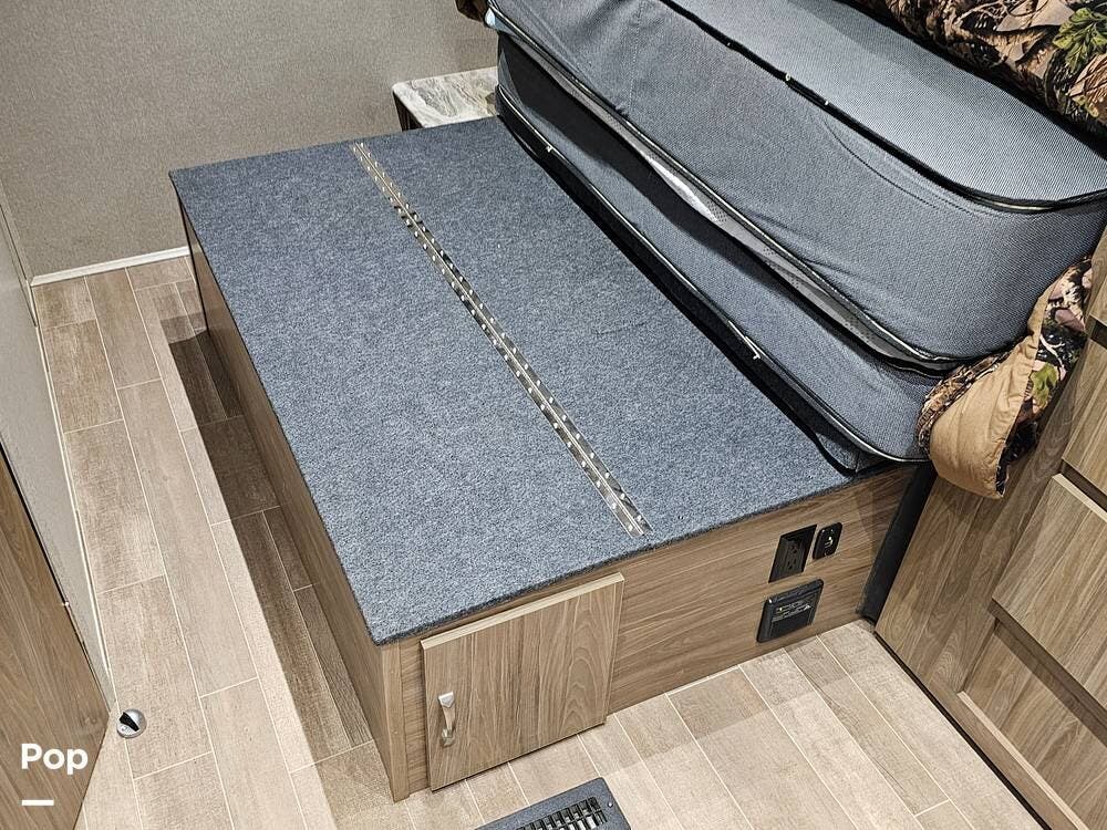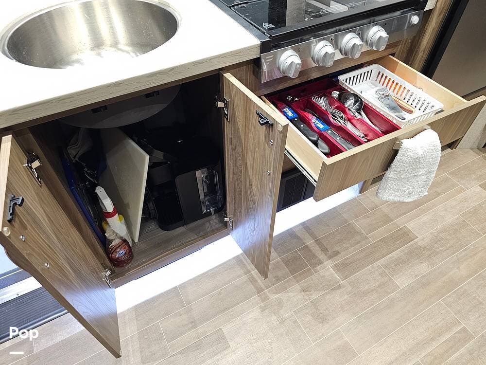 The standard Dynamax features are plentiful and adequate for most buyers, but this one adds a lot more. It includes highly desirable options like two solar panels, an automatic hydraulic leveling system, and an upgraded sound system with dual MTX subwoofers.