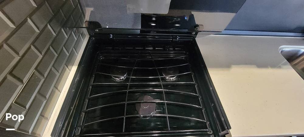 The comfortably outfitted kitchen is mid-coach with a large sink, a fridge/freezer, a microwave/convection oven, a 3-burner stove with cover, and ample storage to keep all your food and cooking utensils properly organized.