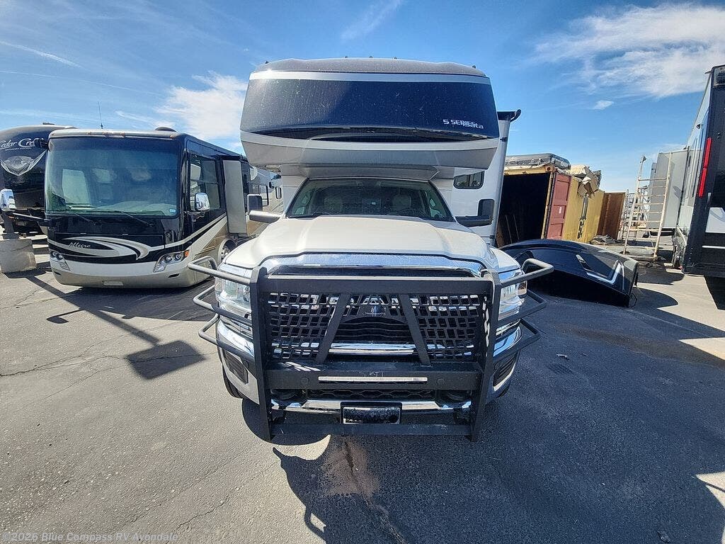 With any one of the Isata 5 Series Super C diesel motorhomes by Dynamax, you will enjoy the confidence that comes along with the control, comfort, and stability of the Ram 5500 chassis and the 6.7L I6 turbo diesel engine. You will also find extra touches throughout like the ambient LED lighting, the cruise control, and the Leatherette reclining driver and passenger seats with armrests. The exterior is even built with extra touches too, like the premium cut-and-buffed paint finish, the dual-pitch, armless patio awning with LED light and motion-activated retraction, and the front-end diamond shield paint protection. Whether your journey takes you to the highways or up the mountain pass, the Isata 5 Series motorhomes will provide you with freedom and comfort like nothing else on the road, so come choose the model that best suits you!