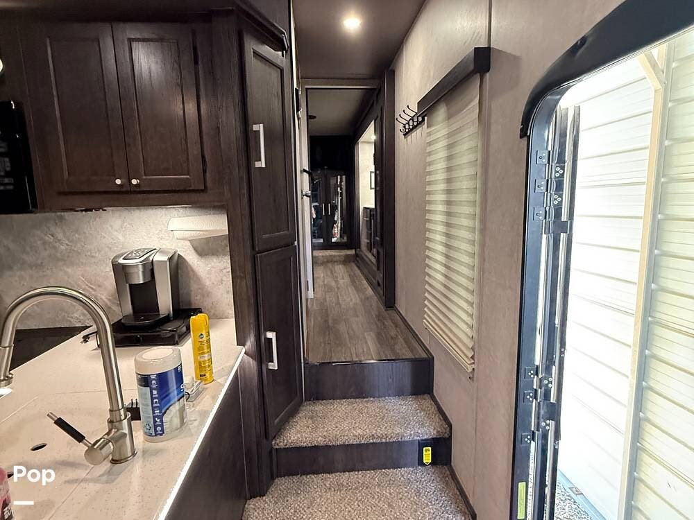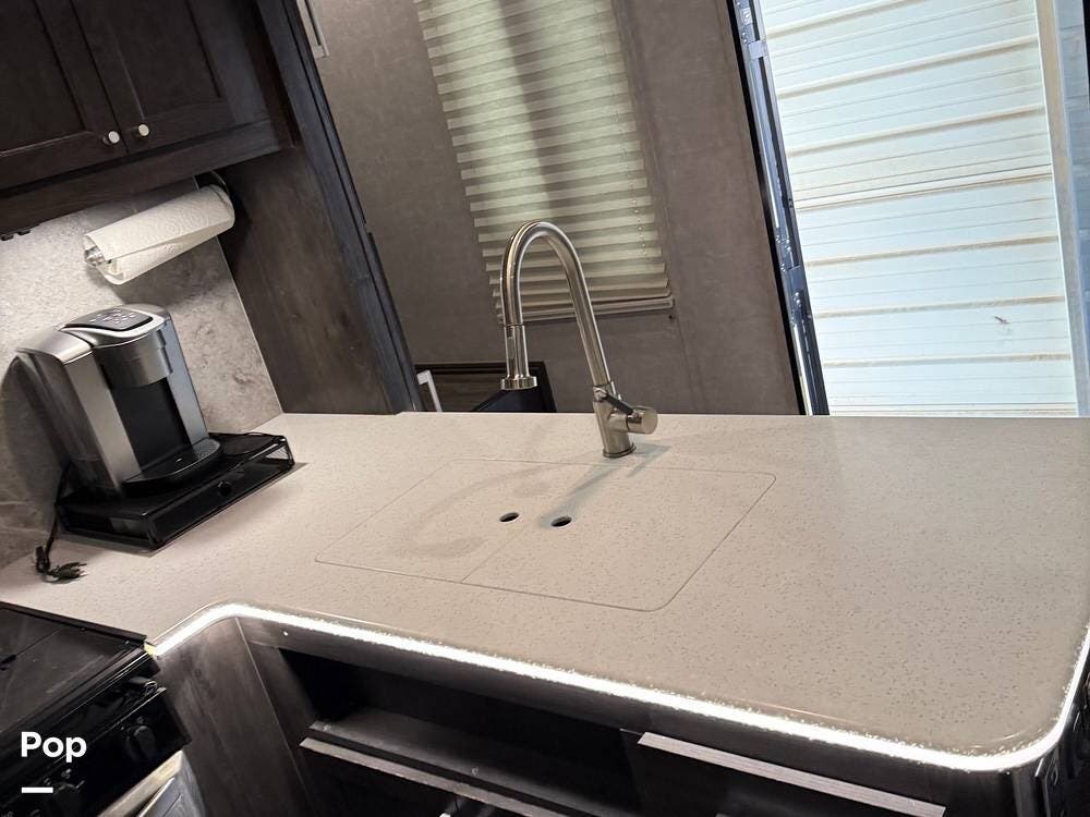 The interior is nothing to hold back with the comfort of a well-laid-out kitchen and residential-sized refrigerator.