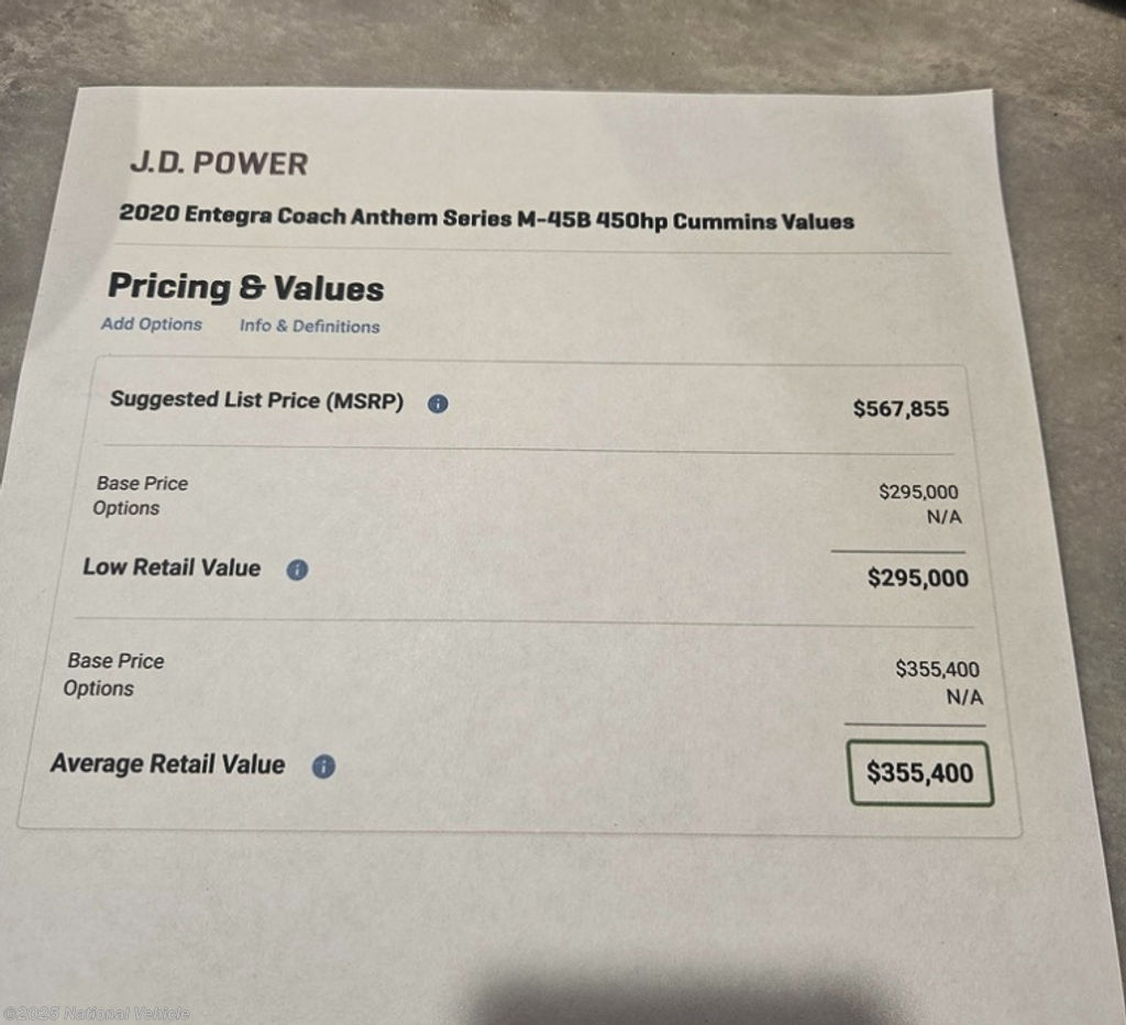 Looking to buy a 2020 Entegra Coach Anthem Class A RV?