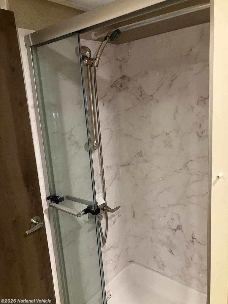 The bedroom offers a queen walk-around bed, and the bathroom layout provides a separate shower and toilet area, giving extra privacy and convenience when traveling.