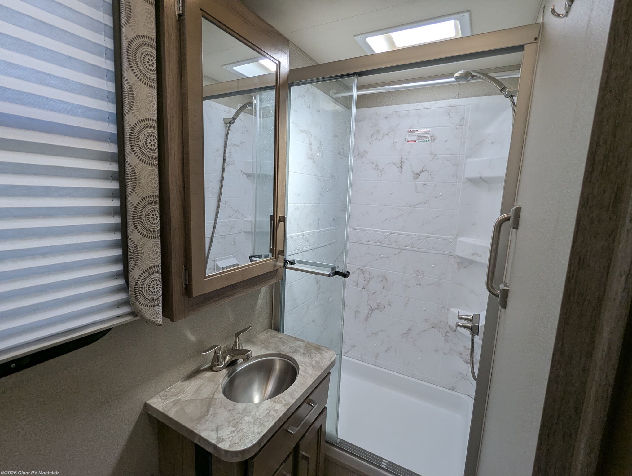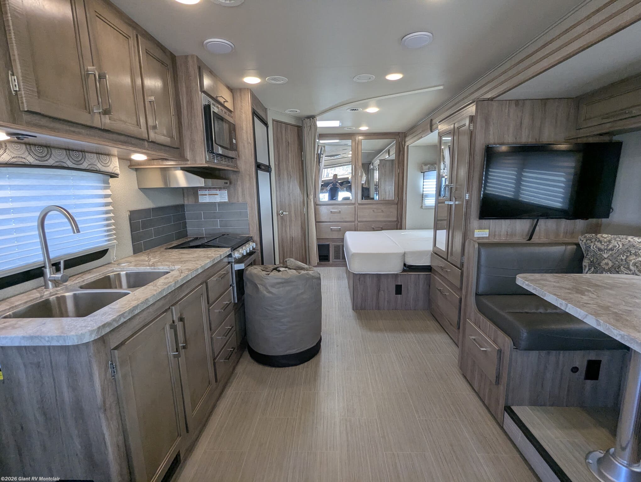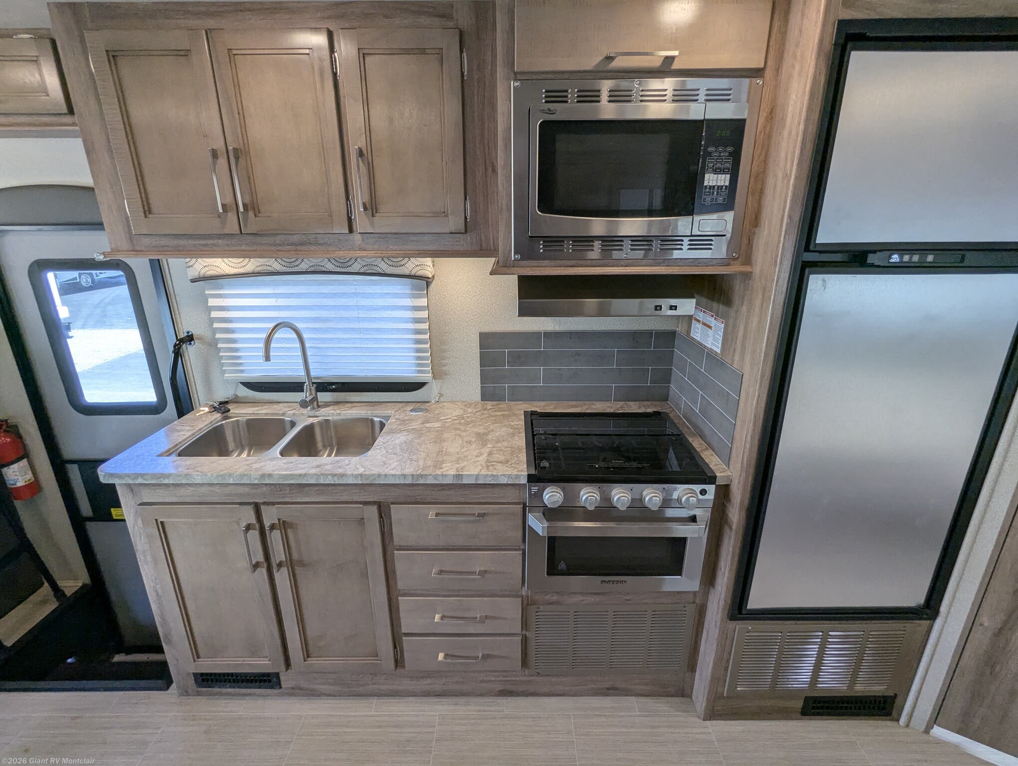 • Fully Equipped for Comfort & Travel including a 3-burner cooktop, microwave, mid-size refrigerator, generator, 15K BTU A/C, 30,000 BTU furnace, and solid tank capacities (43/40/31 gallons) for extended stays