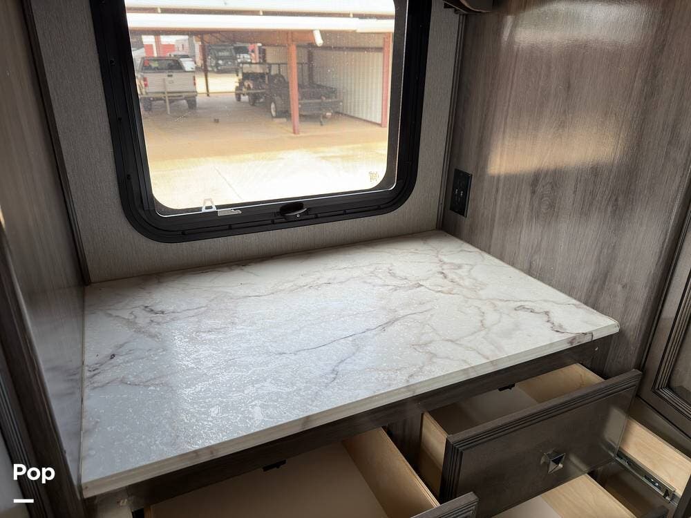 This 2020 Fortis 34MB, located in Edmond, OK, offers all the comforts of home, including a spacious layout, a residential-style kitchen, a generous mid-bath, a king bed, and more.