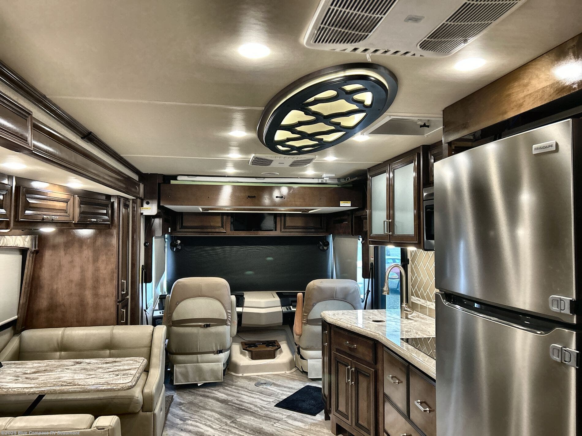 Get ready to travel in luxury and camp in comfort when you choose a Southwind Class A gas motorhome by Fleetwood RV! These models have plenty of residential features, like the stainless steel residential refrigerator and single-handle faucet with pull-out sprayer in the kitchen and the single-handle residential faucet in the bathroom. The kitchen also has adjustable shelves so that you can maximize the space to fit your needs. If you prefer to read before drifting off to sleep, then you will find under-cabinet reading lights for your convenience. For a longer vacation that has the comforts of home, choose a Fleetwood Southwind!