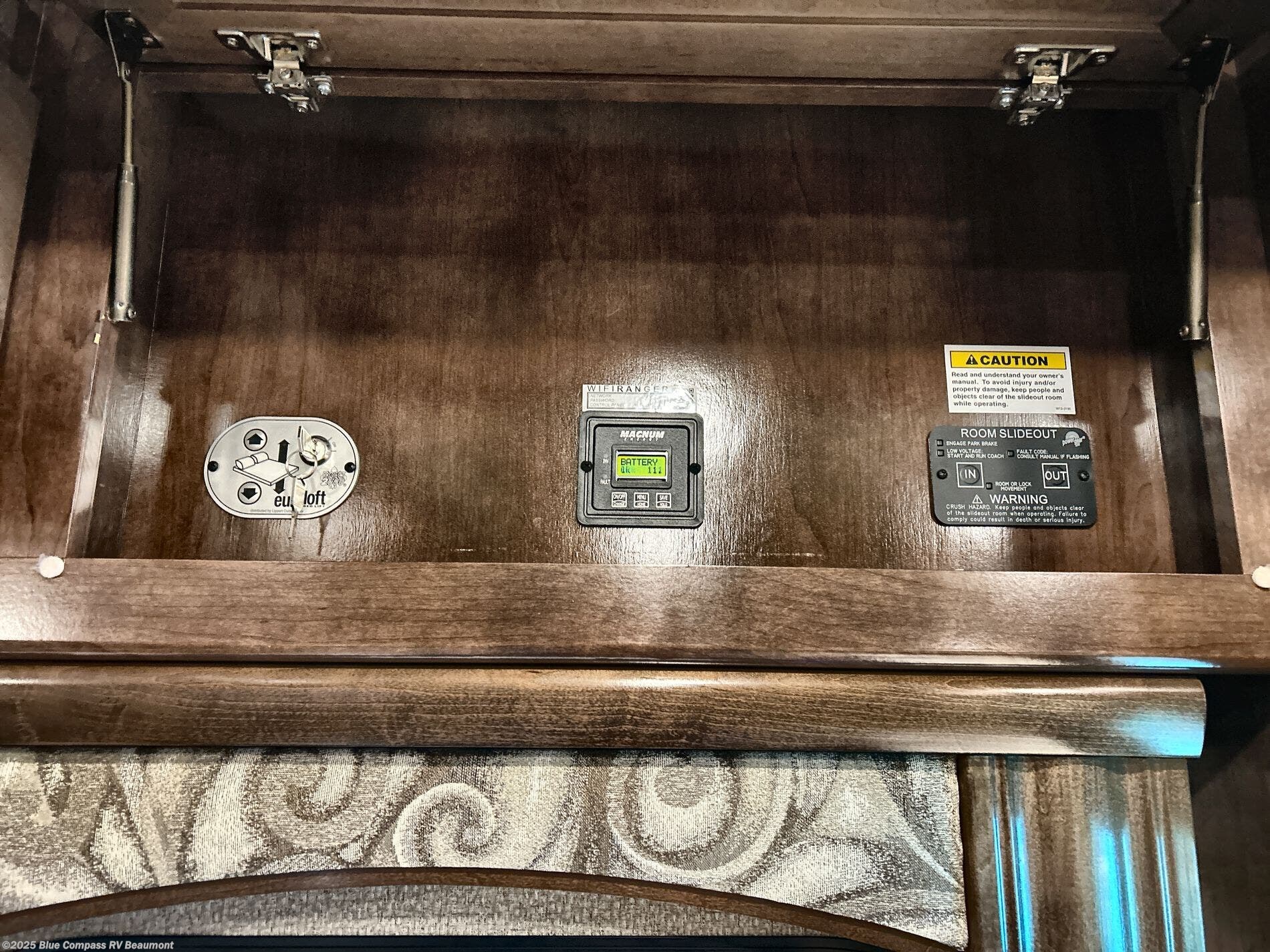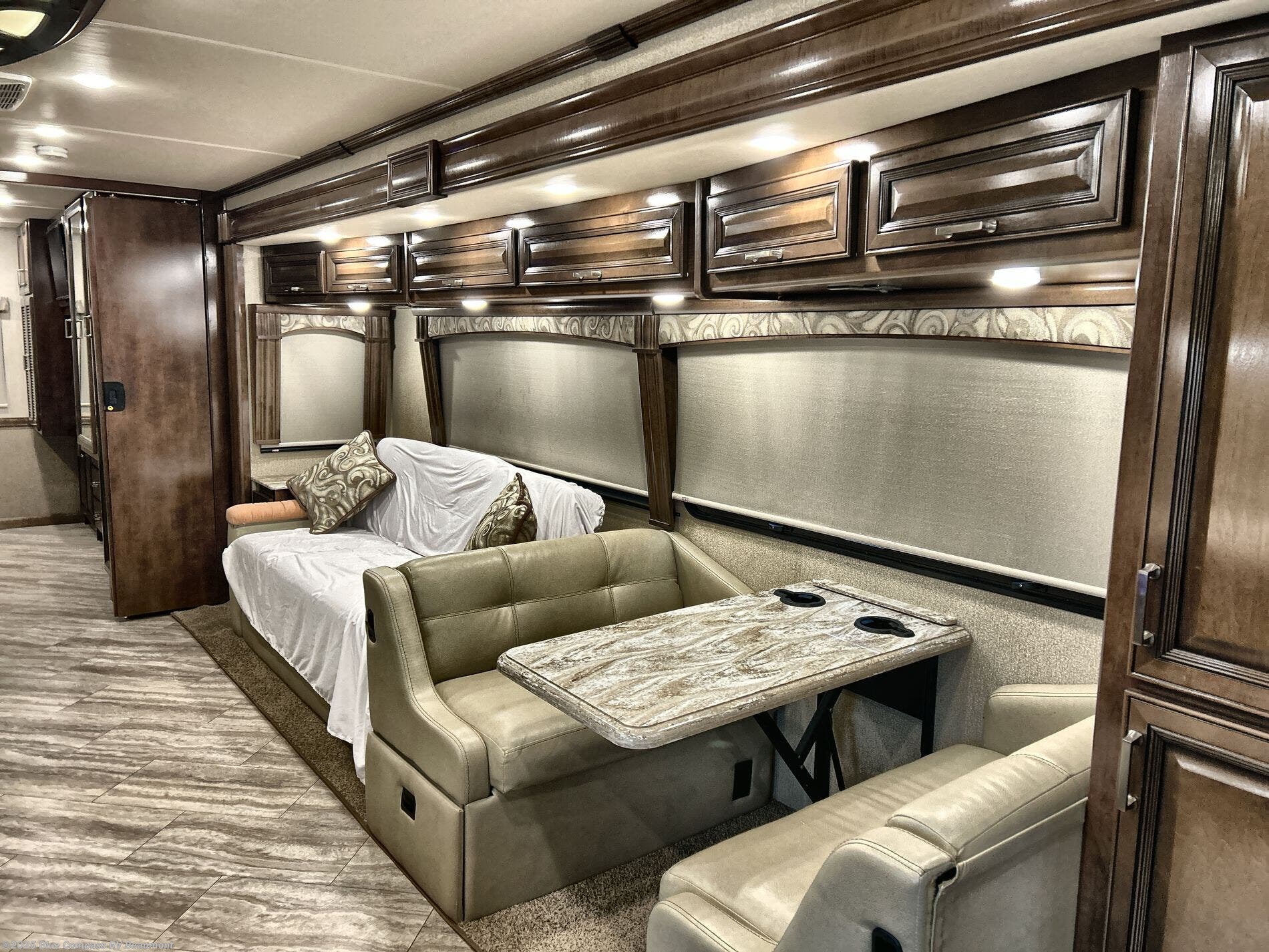 Let this double-slide Southwind Class A gas motorhome take you and your family to the destination of your choice! There are plenty of comforts throughout this motorhome, so sit back, relax, and enjoy your time away from home. Come enjoy your morning cup of coffee at the pedestal table located between the driver and passenger seat after waking up refreshed from a comfortable night's sleep on the RV king bed. Within the roadside slide out, there is a 42" x 72" booth dinette and an 81" jackknife sofa, and across from the sofa you will find a 40" LED TV and an electric fireplace which is great for those chilly evenings! You also have the option to add a drop-down queen bunk with 24" LED TV above the cab if you need a little extra sleeping space.