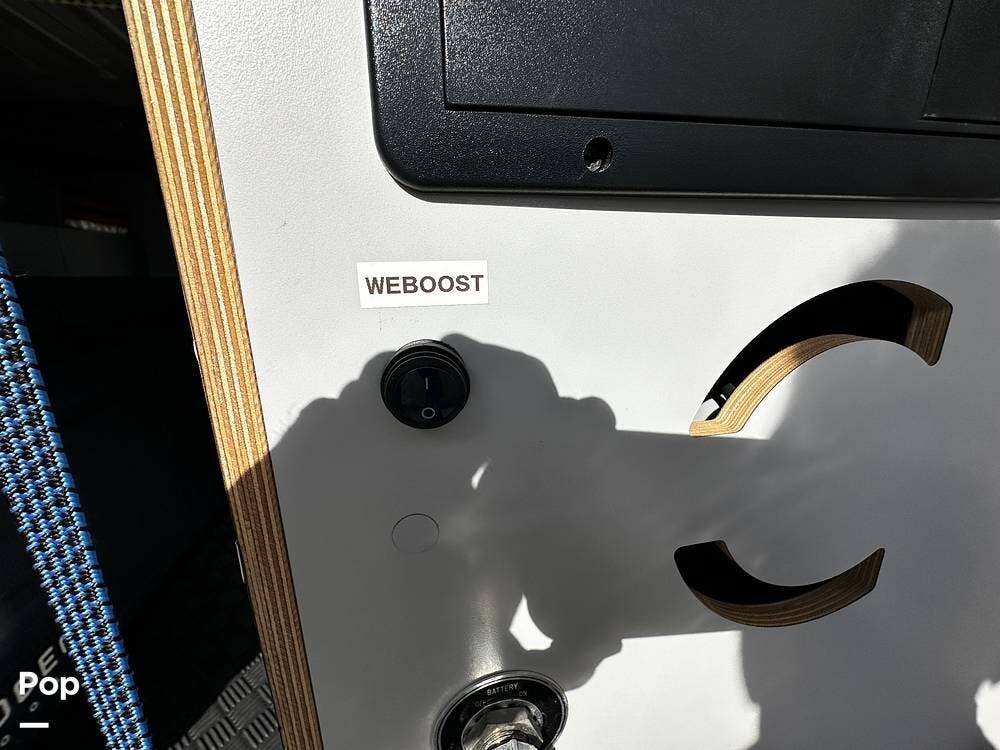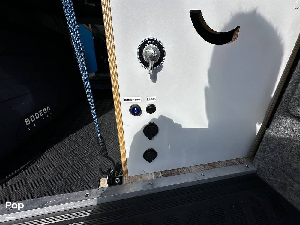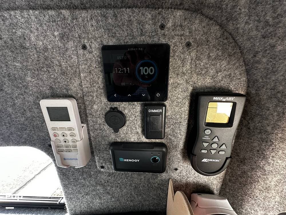 The extensive features list includes 200 watts of solar, 4 - 100 amp hour Lithium batteries with a 3000 watt inverter, 25 amp charging system, WeBoost Drive Reach EV, Bluetooth system monitor and shore power hookup to run the AC, microwave and charge the batteries.