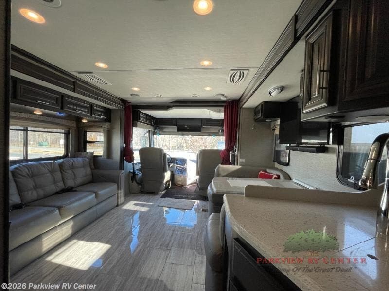 Each Forest River Berkshire Class A diesel coach is built on a Freightliner XCR raised rail chassis with a Cummins ISB turbo diesel engine giving you 360 HP on the open road. You will appreciate the Optview glass instrument panel, the one piece windshield, the Neway front and V-Ride rear suspension giving you the ability to carry more gear, equip the interior with premium amenities, and offer a comfortable driving experience. There is even an auto air suspension deflation system, and Sachs custom tuned shock absorbers. A few of the highlights inside include the Leatherette driver and passenger seat with swivel and recline positions, the driver console with wireless cellphone charger, all the entertainment features included, and the technology you are use to. Choose the Berkshire that fits your traveling lifestyle of luxury and convenience!