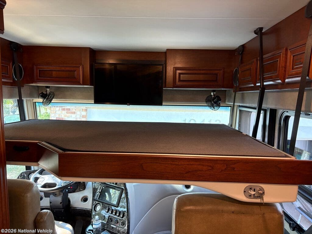 Sofa bed with built-in air mattress, dinette bed, and drop-down electric bunk over cab