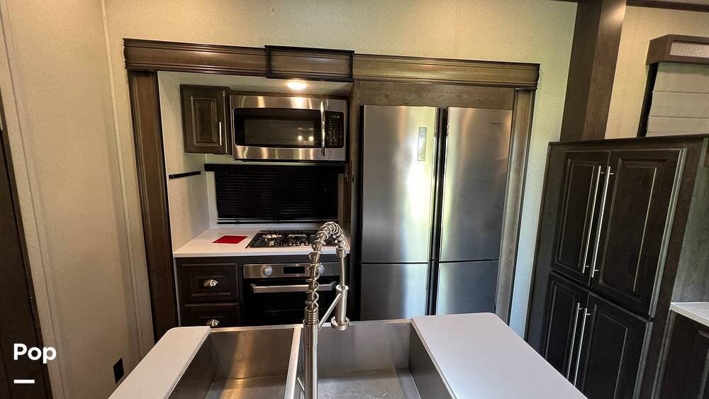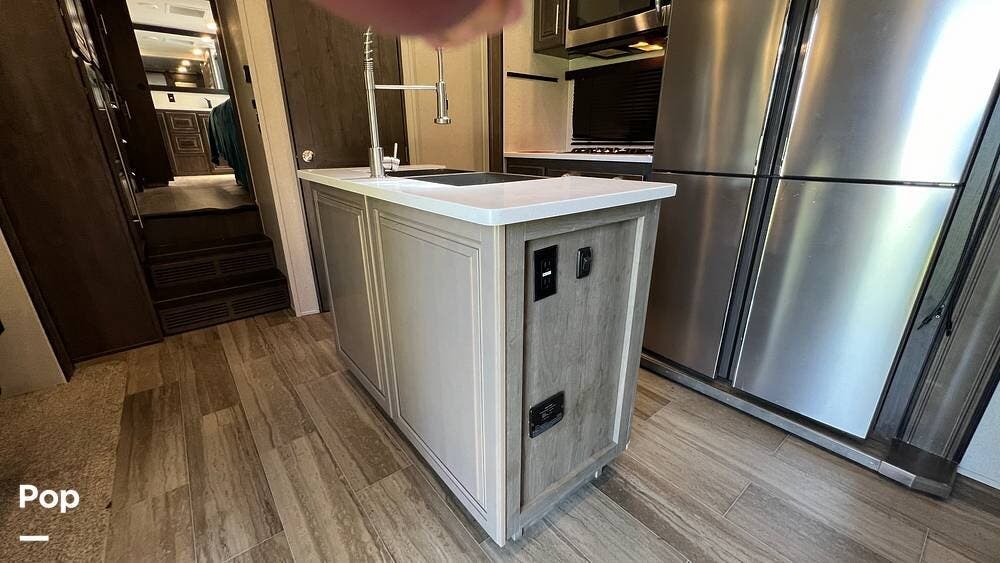 This 2020 Cardinal 370FLX is a luxury fifth wheel decked out with amazing features to make your next trip comfortable and convenient. It has vinyl floors and crown molding throughout.