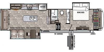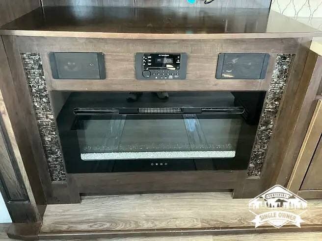 Cedar Creek's all-aluminum superstructure and bonded sidewalls are paired with a true gel-coat exterior and painted front cap, giving this unit a high-end appearance and long-lasting finish. The enclosed and heated underbelly with tank heating pads supports year-round use, while the large pass-through front storage is heated and easy to access. An 18-foot electric awning with LED lighting extends the living space outdoors, and the full hookup docking station makes setup simple, whether you are traveling or parked for the season.