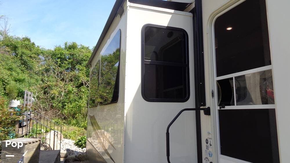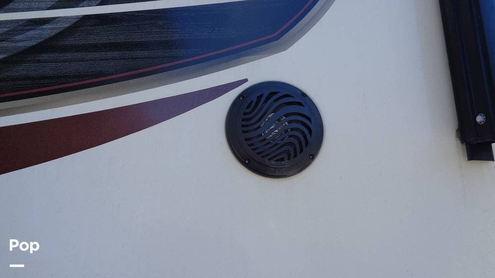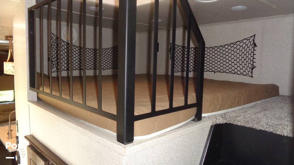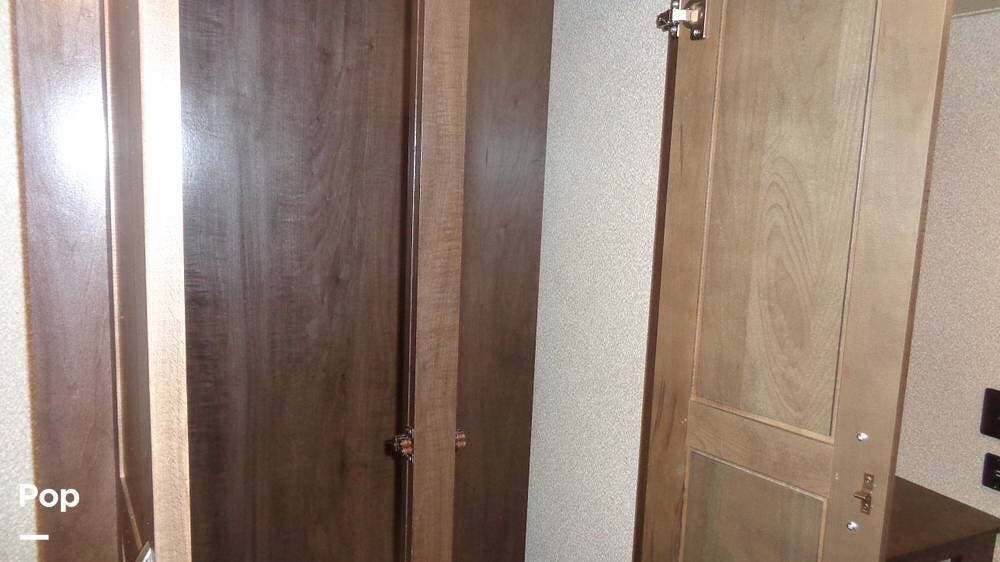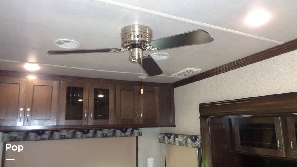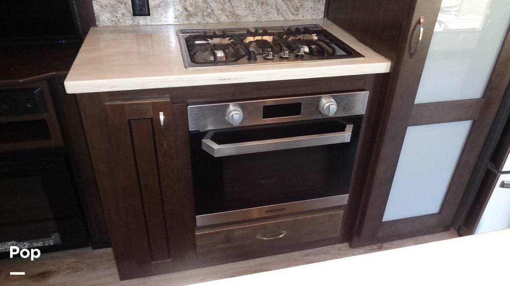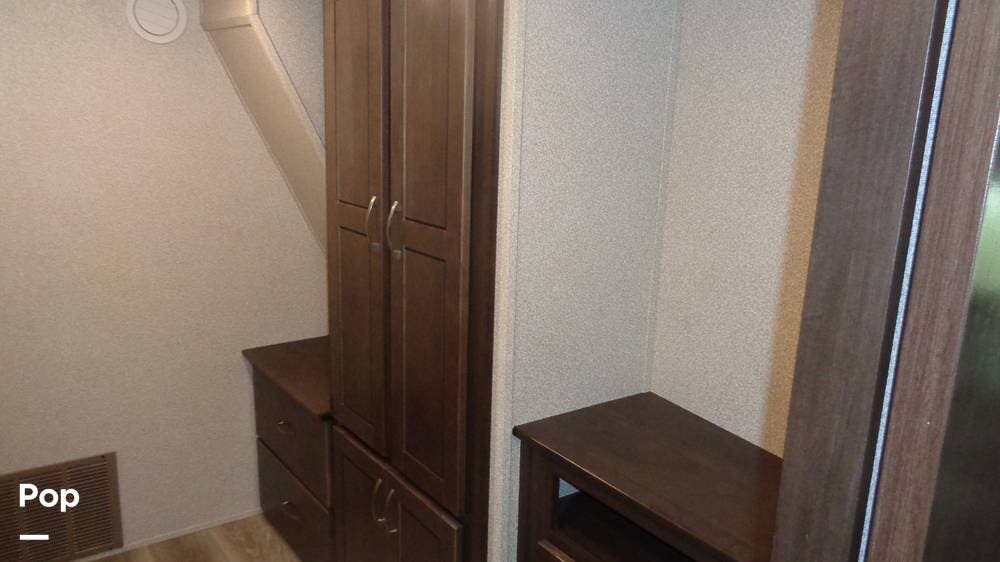 This fifth wheel has a sleeping capacity for at least eight people and dual roof-mounted AC units that keep you cool on the hottest days. The unit also has an electric fireplace that can be used for heating or just ambiance. All these and more make this fifth-wheel one you want to check out!