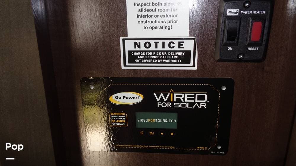 Outside, the patio awning makes this RV great for tailgating parties. All RV systems are clearly marked and easily accessible - there are large storage compartments with easy access to them around the travel trailer.