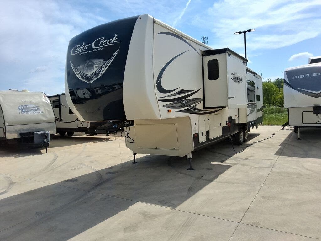 Request More Info on this 2020 Forest River Cedar Creek Hathaway Edition 38DBRK Offered for sale by Blue Compass RV Springfield