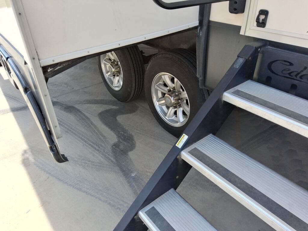 Each Cedar Creek Hathaway Edition fifth wheel by Forest River begins with Cedar Creek's famous all aluminum superstructure on a Z-frame with metal wrapped skirting to the frame, includes a full, walk-on roof with TPO vinyl roof covering, and Silaprene bonded sidewalls that are resilient and grow stronger with age, plus offer outstanding resistance to UV, heat, cold, moisture and much more! The living room includes larger full view windows that open for ventilation, the kitchen offers an Insignia, free standing gas range and full extension drawer glides with self-closing drawers, and the bathroom is redesigned with a trough sink, upgraded shower head, and more! Make a smart choice, experience a Cedar Creek Hathaway Edition today!
