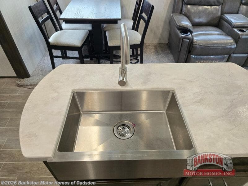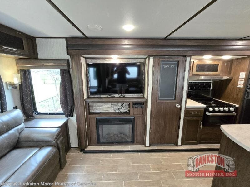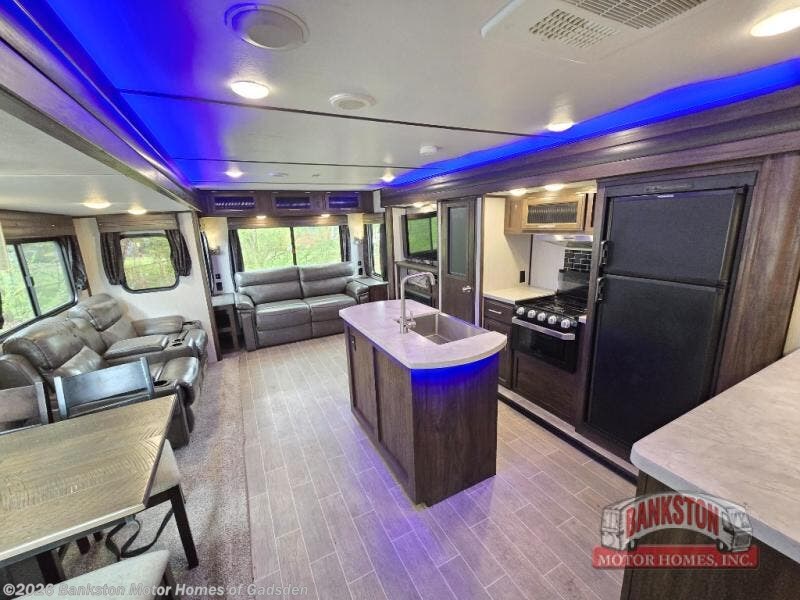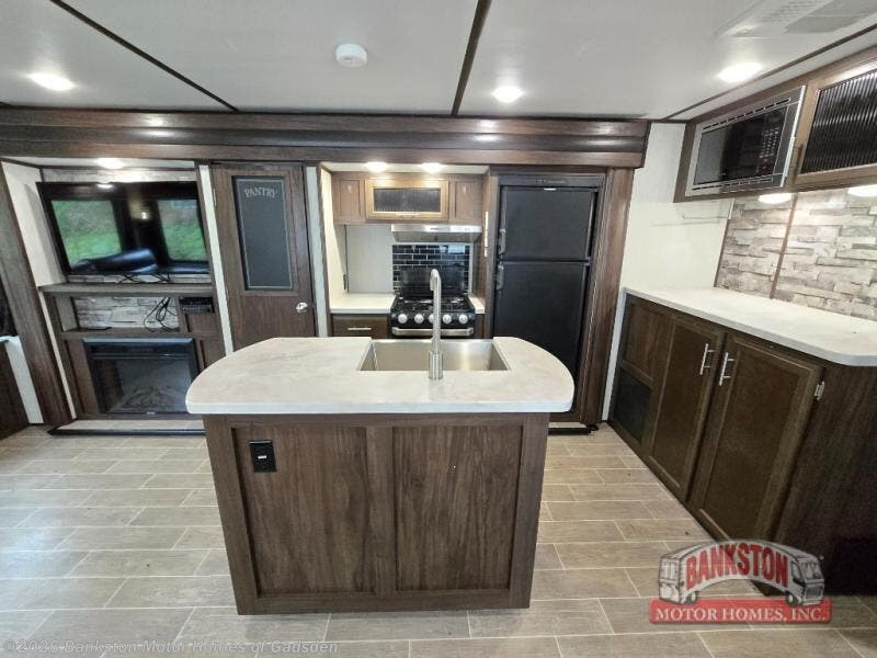 When you take this Cherokee Alpha Wolf travel trailer with you on your next expedition, you will look for any excuse to get away again! The kitchen is packed full with helpful amenities to make meal preparations run smoothly, like the pantry and island with a large sink, and the full bathroom will give you the ability to effortlessly clean up in the radius shower after a long, hot day in the sun. The main living area is kept spacious and roomy because of two opposing slides that let you gather together on the tri-fold sofa, free-standing table with chairs, or dual recliners.