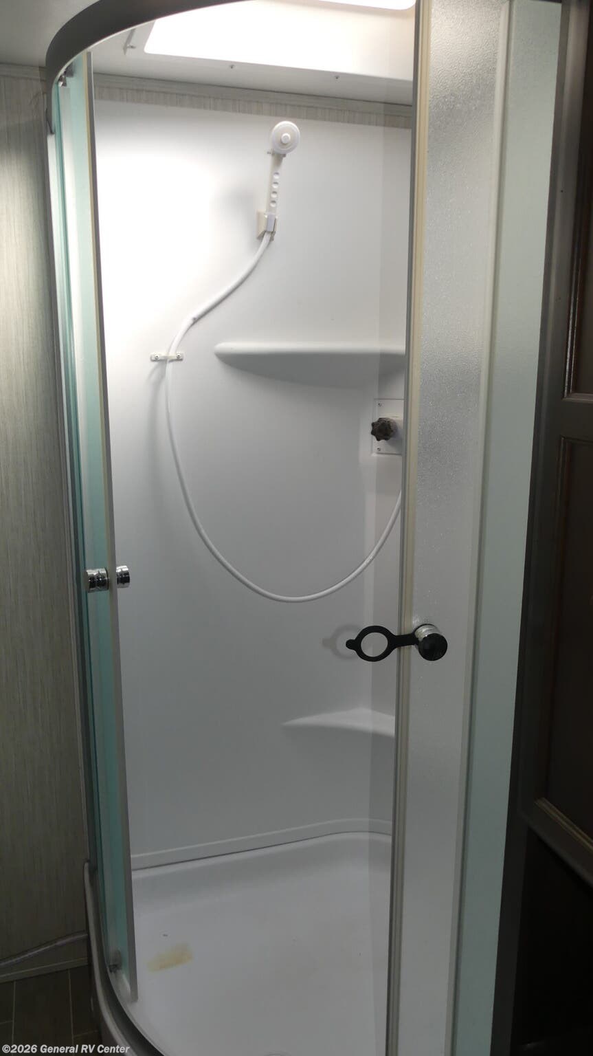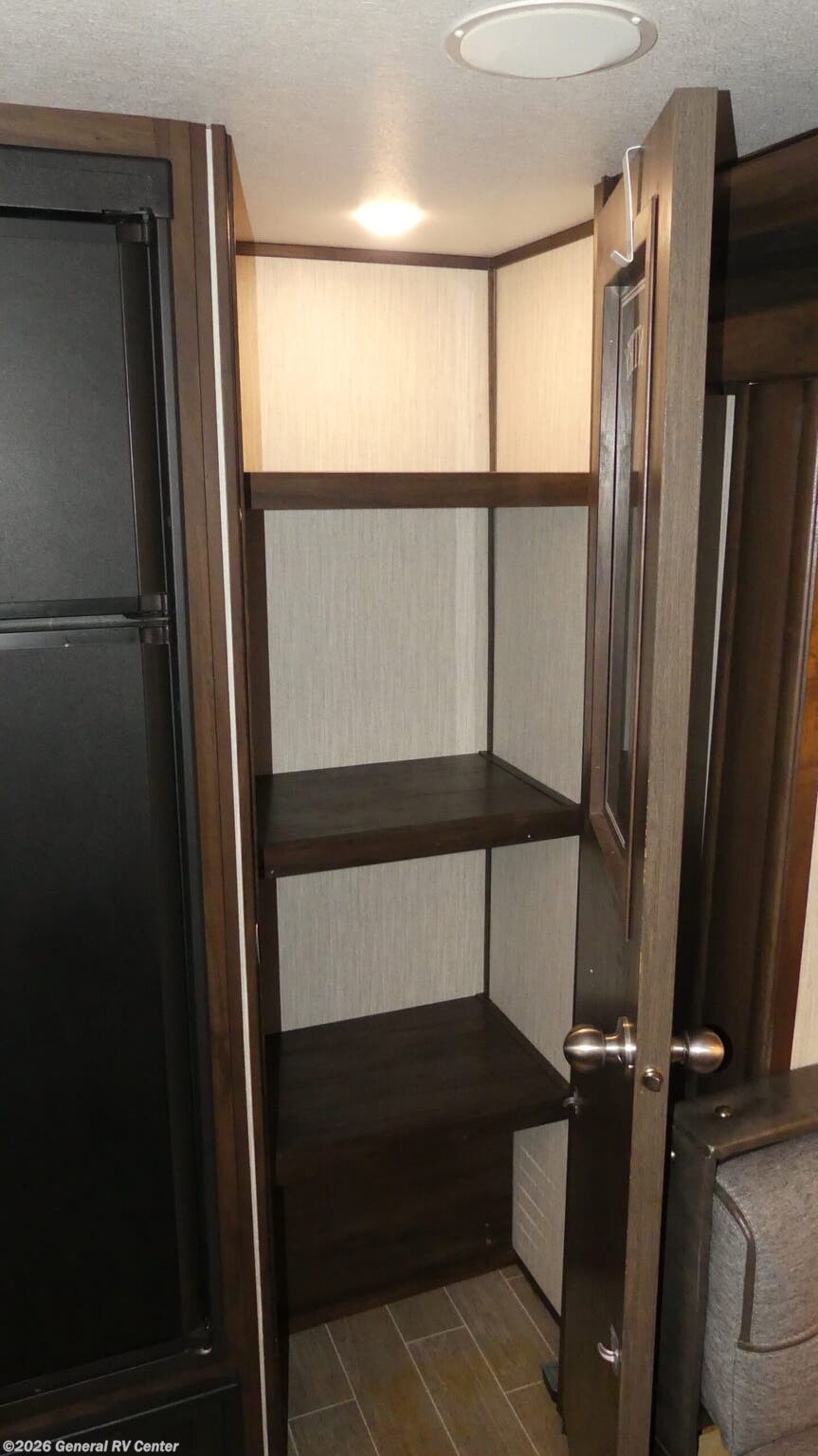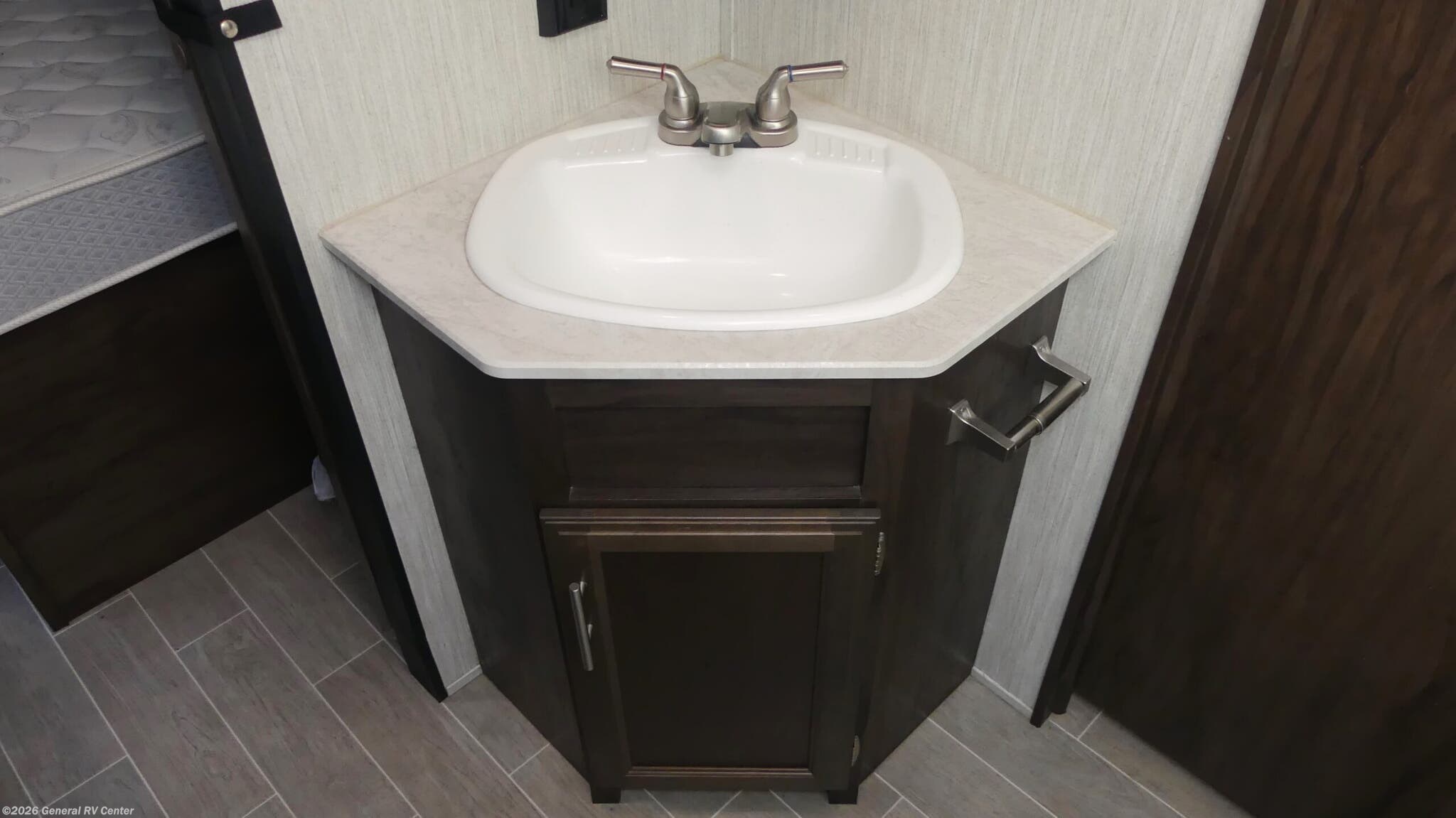**Forest River Cherokee Alpha Wolf travel trailer 27RK-L highlights:** * Single Slide * Rear Kitchen * Master Suite * Two Swivel Chairs * Sleeps Five This Cherokee Alpha Wolf travel trailer is excellent for a smaller family or group of individuals who are looking to explore the country without losing the comforts of home. With a full kitchen and large pantry, you will find it easy to prepare dinner each evening, and the single slide that houses the booth dinette and sofa give you extra space to sit and chat with the chef. You will achieve complete relaxation on the queen-size bed in the front master suite, and the private bathroom entrance will allow you to quickly and conveniently get ready each morning. The Cherokee Alpha Wolf travel trailer is the first of Cherokee's line up to be fully laminated, which makes it lightweight, well insulated, and able to provide a sleek and modern exterior. The tire pressure monitoring system and exterior shower with hot and cold water add to the usefulness and value of the Alpha Wolf, and the LED lighting on both the exterior and interior delivers a bright and cheerful atmosphere no matter what time of day it is. Inside of the Alpha Wolf you will find blackout kitchen appliances in the kitchen and plenty of storage for your pots and pans underneath the sink.