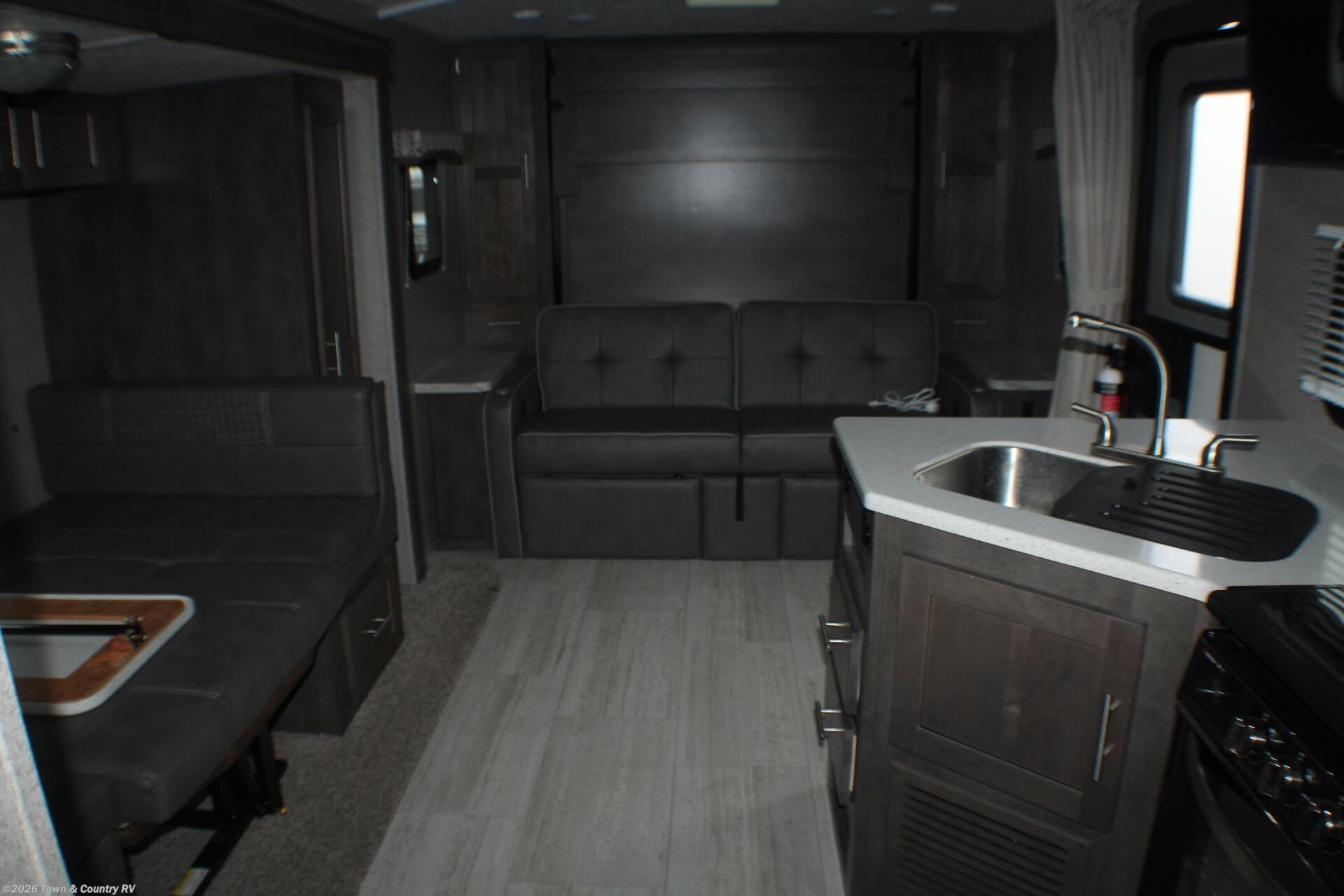 Murphy Bed - Back Bathroom: 1 Slide, Air, Awning, Slide Topper, Furnace, Back Ladder, Outside Kitchen, Refrigerator, Microwave, Double Sink, Oven/Stove, Pantry, Booth Dinette, Sofa/Bed, Sleeps 6, GVWR: 6,844#, Unloaded Weight: 5,261#.