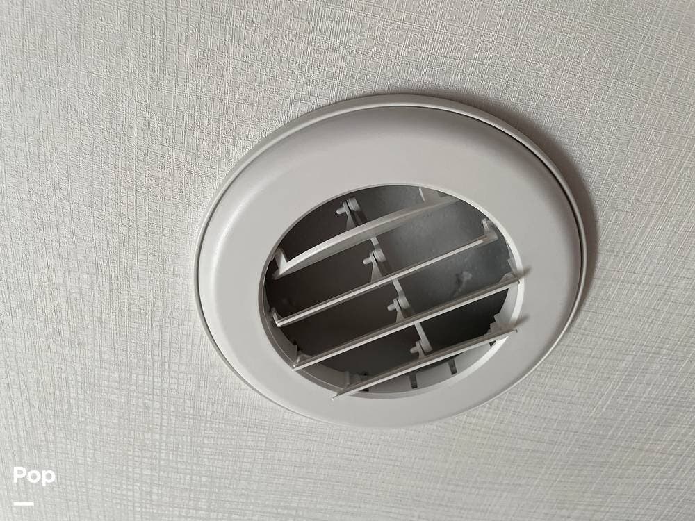 The living area is bright and inviting, complemented by an LED TV and surround sound system for entertainment on the road. A full bathroom with a glass shower door and skylight adds a touch of home-like comfort, while ducted air conditioning and heat keep the interior comfortable in any season.