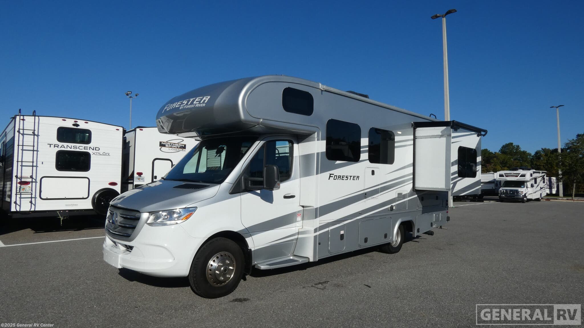 Forest River Forester MBS Class C diesel motorhome 2401Q highlights: * Queen Bed Slide Out * Cab-Over Bunk * Convection Microwave * L-Shaped Dinette Pack your bags and get ready for a trip across states in this motorhome that includes many at-home comforts. You will find a comfortable queen bed slide out in the rear corner bedroom and a privacy curtain you are sure to appreciate. This model includes four seatbelts so you can bring along a couple extra ride-along guests, and the cab-over bunk allows sleeping space for one to two. Enjoy your meals at the L-shaped dinette and the lounge chair with a flip-up lounge table provides additional seating space, as well as the swivel captain's seats that can turn around to be a part of the conversation. You'll find all the kitchen amenities to create meals each day, including a three burner range, a convection microwave, and the 10 Cu.Ft. 12V refrigerator can hold all perishables. With each Forester MBS Class C diesel motorhome by Forest River, you will appreciate the ONEcontrol remote monitor system which allows you to control your units functions right from your smartphone. The outside shower provides an easy way to fill the dogs water bowl and you can sit out a little later each night under the power awning with LED lights. You'll find roto-cast storage compartments as well as plenty of interior storage for all your camp gear. Each model includes LED floor lighting, a 12V USB charging station, an upgraded memory foam mattress, stainless steel appliances, plus many more interior comforts to make every trip a memorable one.
