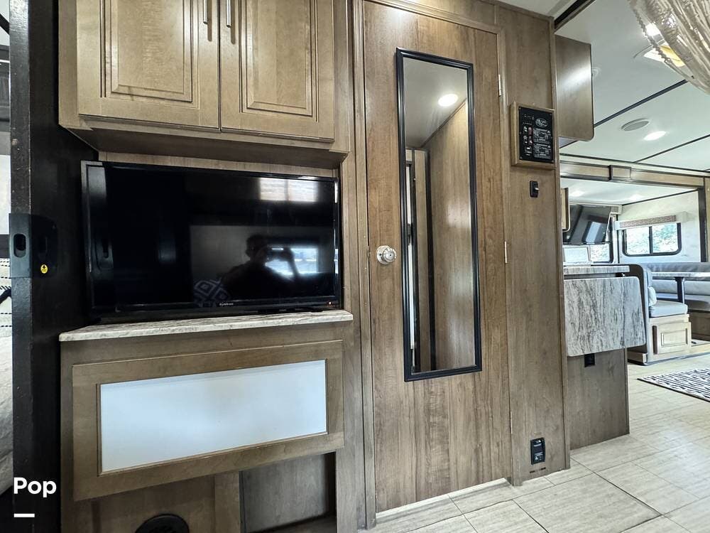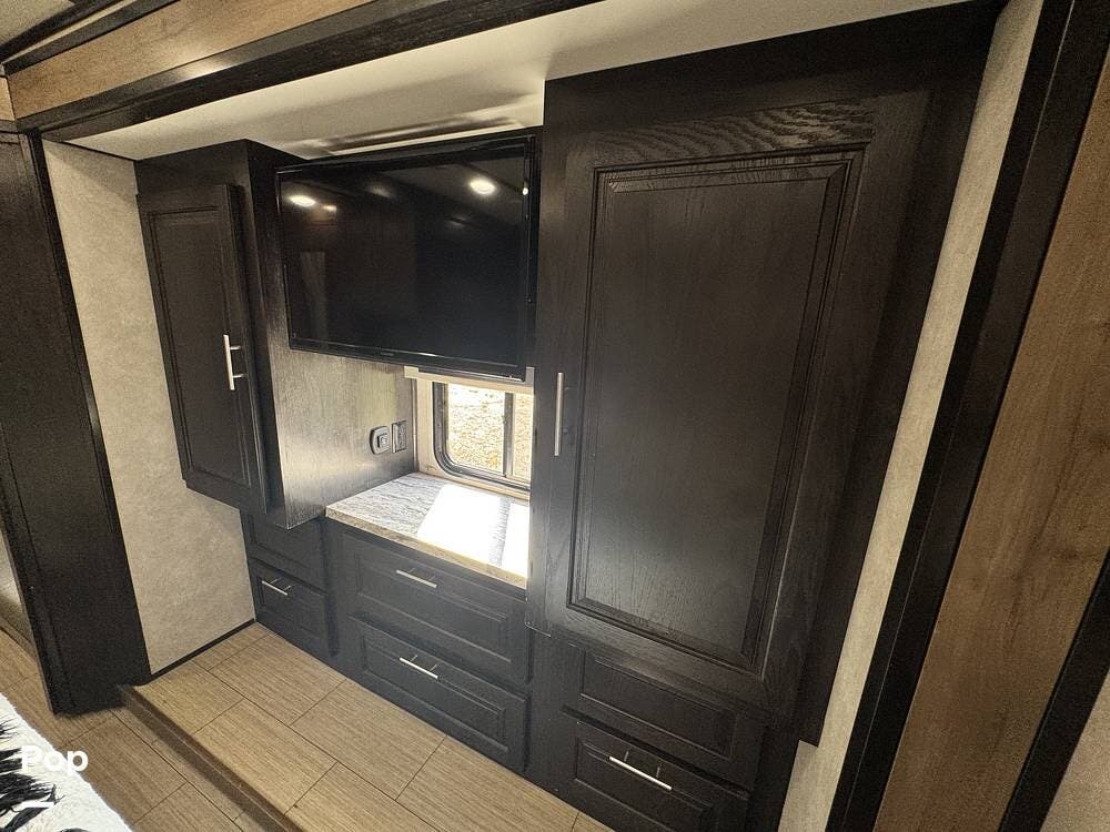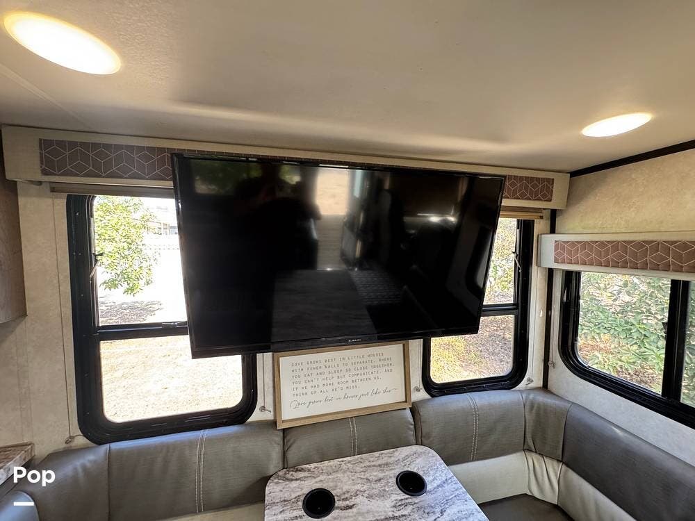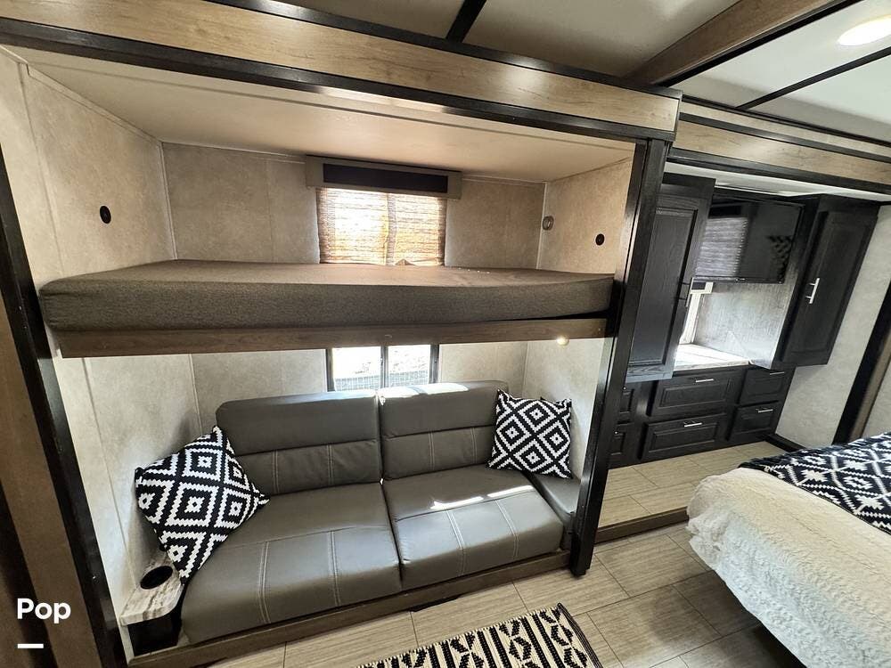 Entertainment is always close at hand with multiple TVs, including a bedroom TV, a TV in the hallway for the bunks, a TV at the dinette, and an exterior TV perfect for enjoying movie nights under the stars.