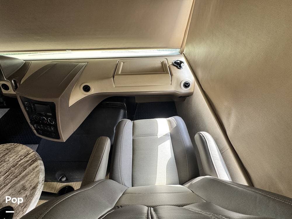Exterior features include a fiberglass roof, patio awning, slide-room awnings, leveling jacks, and a side-view camera, along with a backup camera for excellent visibility around the motorhome and solar prep.