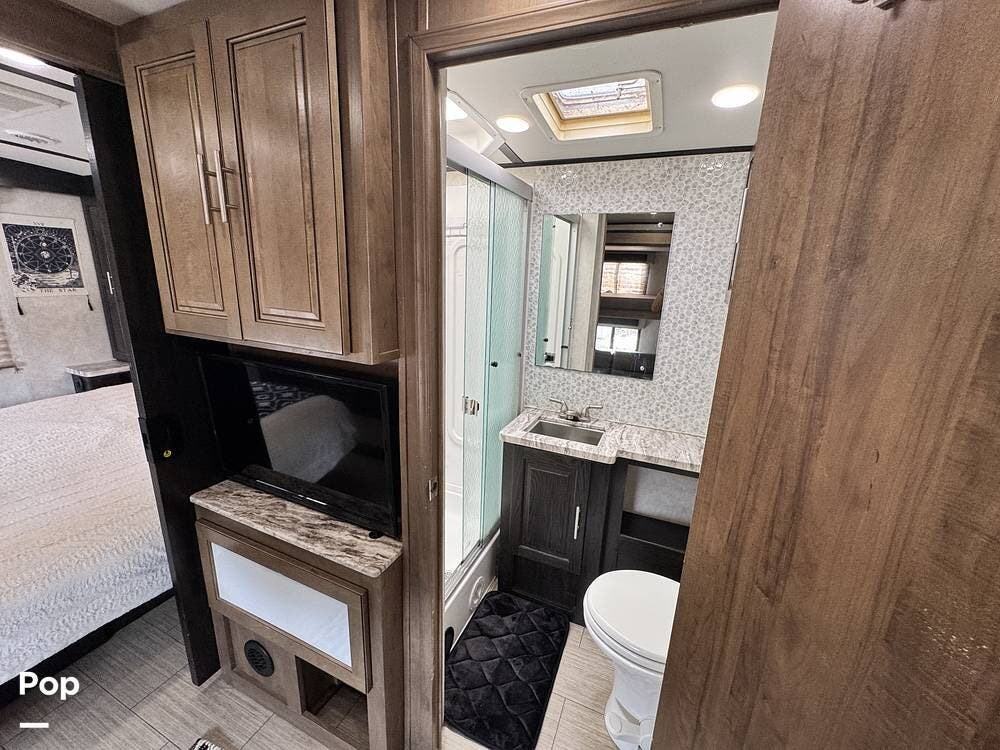 Hit the road in style and comfort with this fully equipped 2020 Forest River FR3 32DS. Measuring approximately 34 feet in length, this RV is powered by a Ford V10 engine and comes equipped with a 5.5 kW Onan generator, 50-amp service, and dual ducted A/C units to keep you cool and comfortable in any climate.