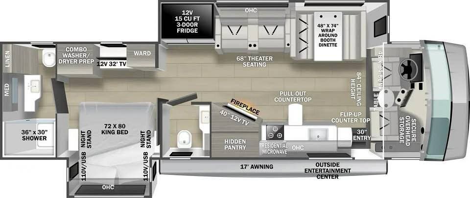 Built on the dependable Ford F53 chassis and powered by a 320HP Triton V10 engine, this gas-powered coach delivers a smooth and confident ride whether heading cross-country or parked at your favorite campground. At just under 36 feet in length, the FR3 34DS offers an ideal balance of spacious living and drivability, making it a top choice for full-time RVers and weekend explorers.