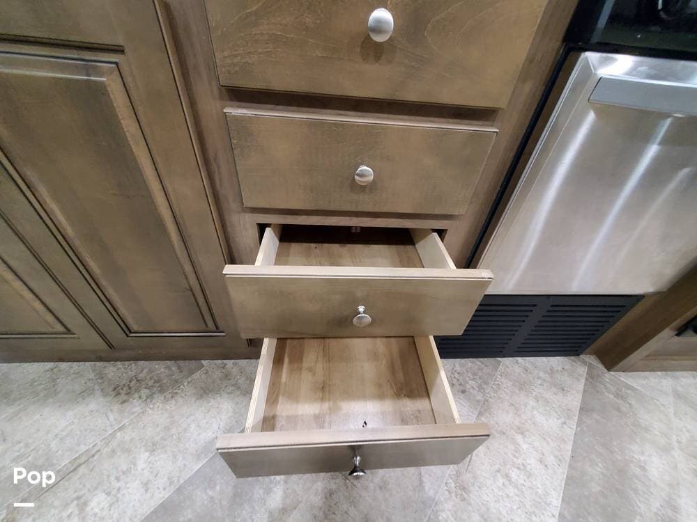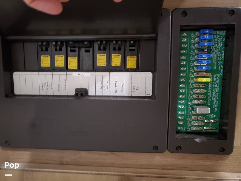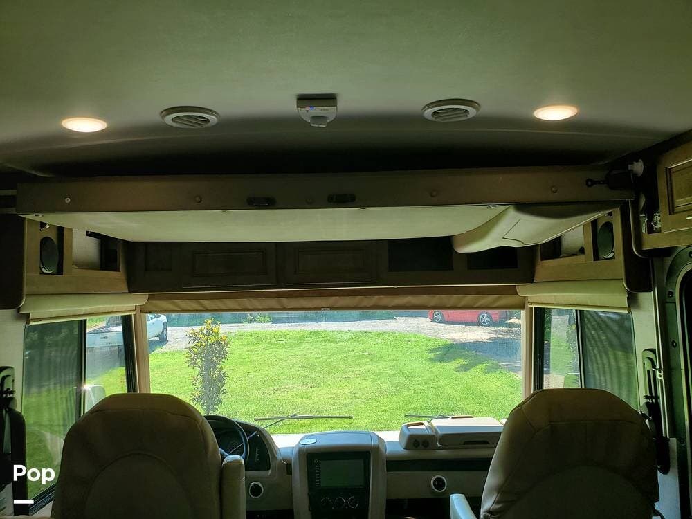 Blackout roller shades and sun shades, with a power-operated front sun shade. Electric front bunk.