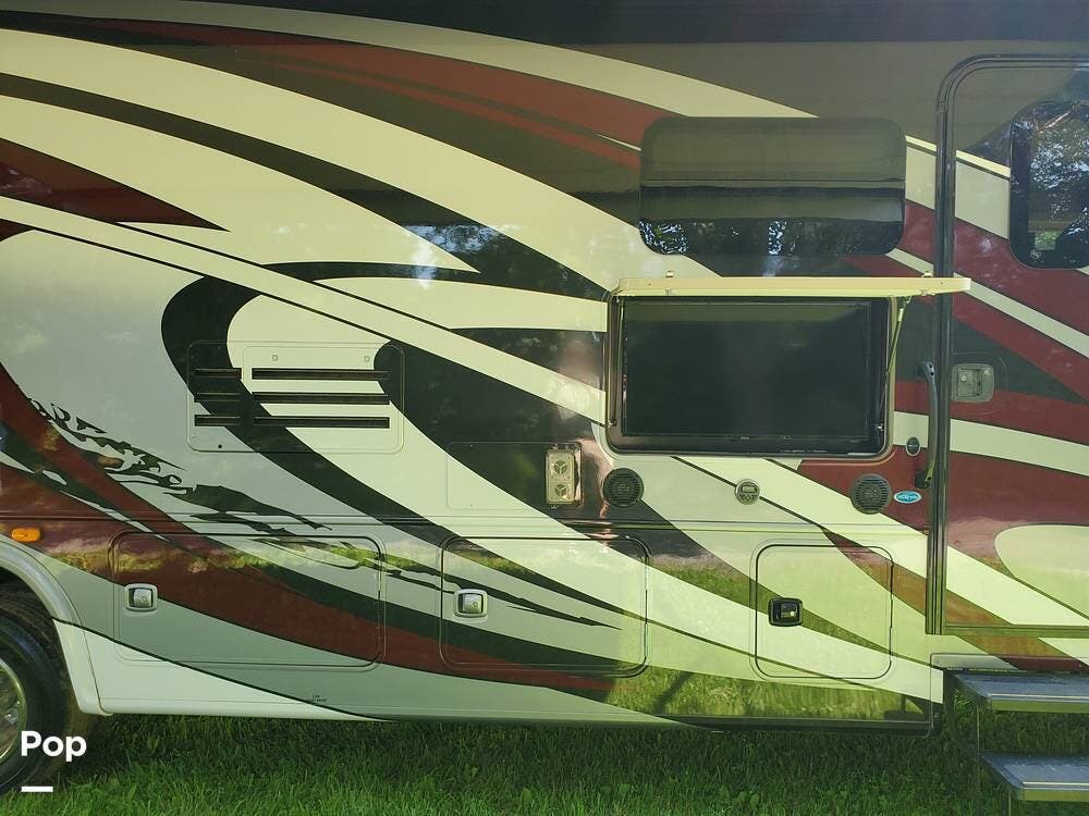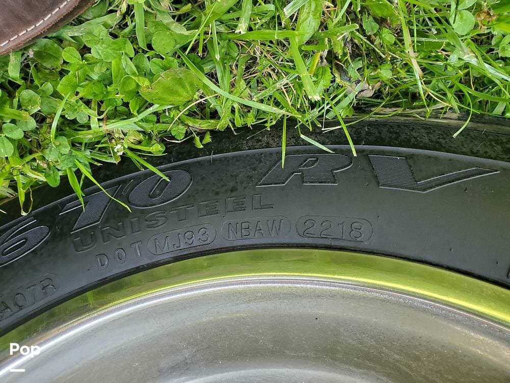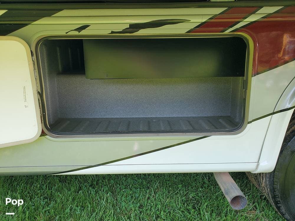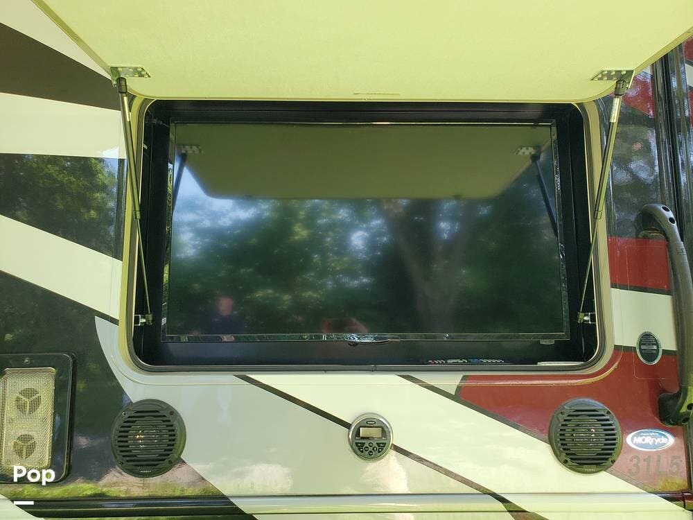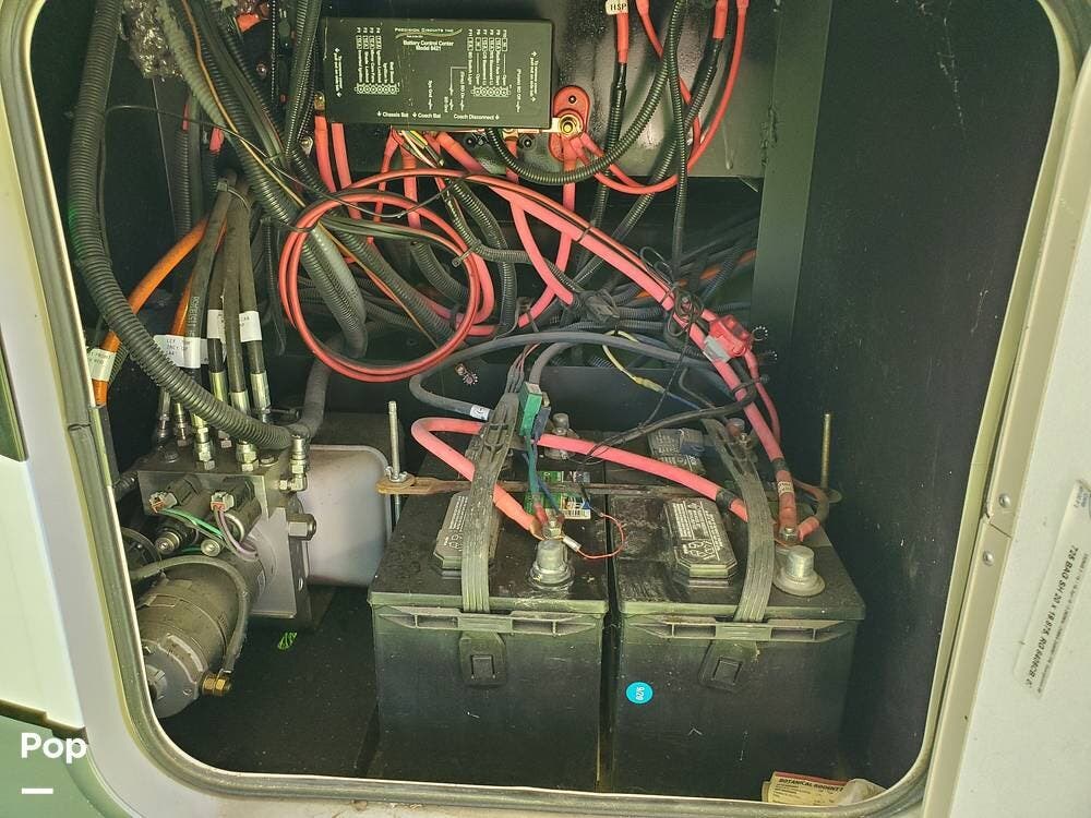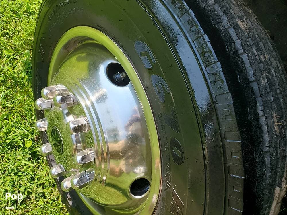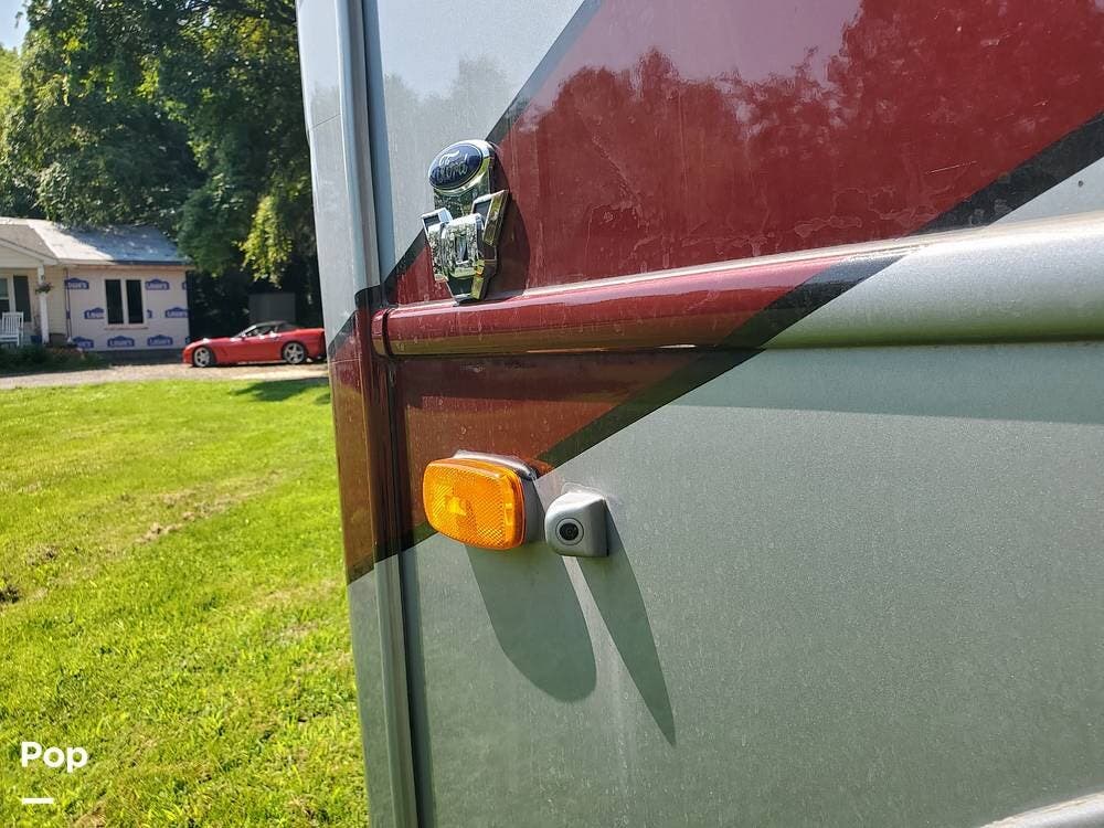 And low maintenance. Slide toppers. Fiberglass roof. Tire Minders, with the valve stems for the inside rear tires brought to the outside! Ford Triton V10 high-torque engine. Black tank flush. Rear ladder. Touch-panel controls and monitors.