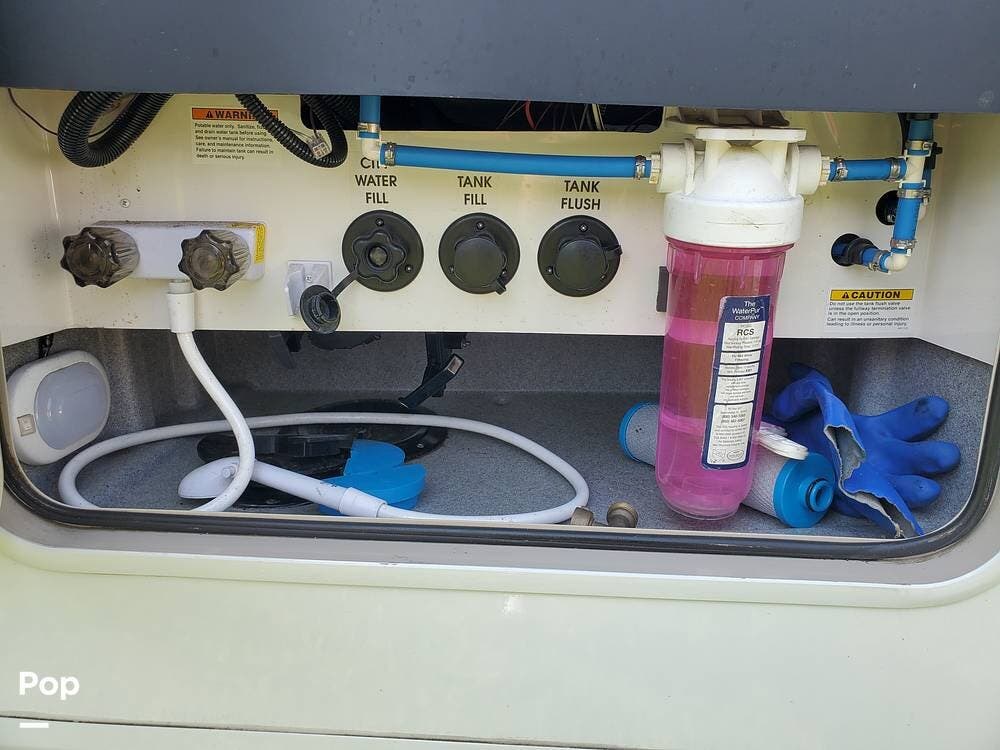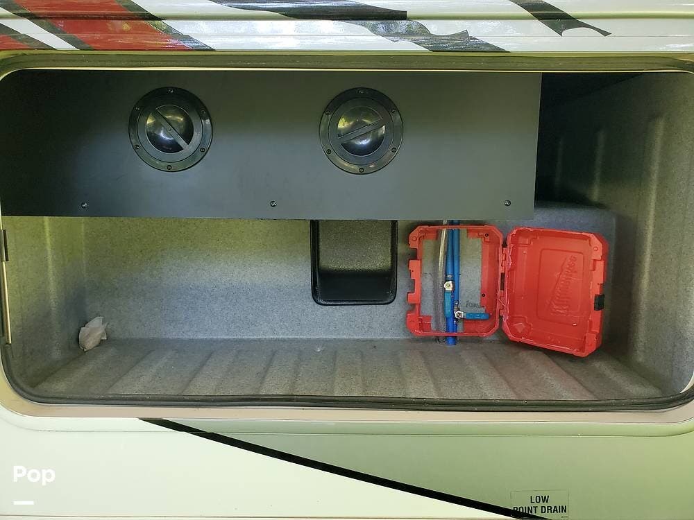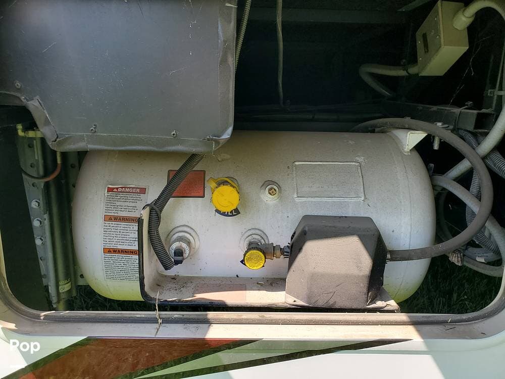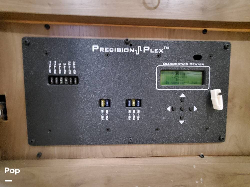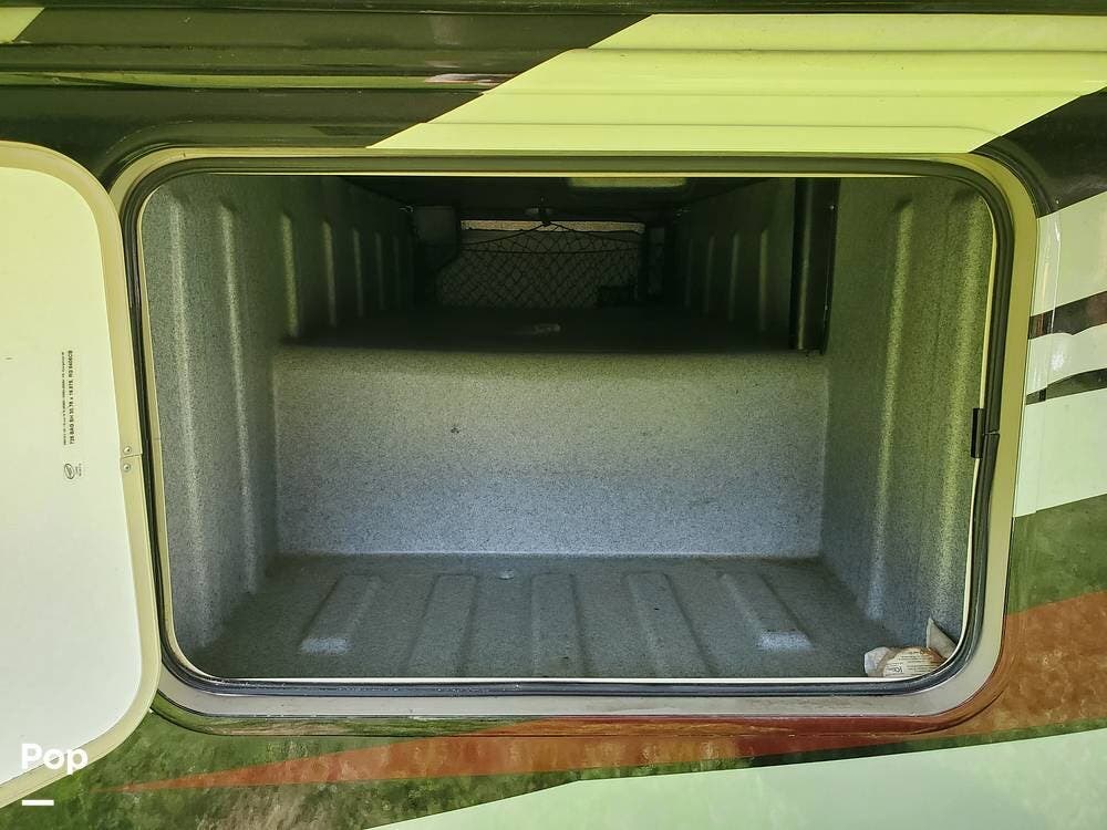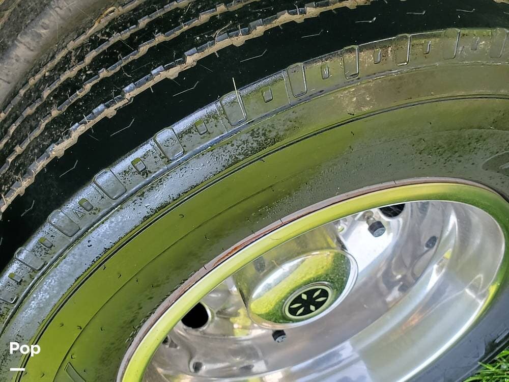 And low maintenance. Slide toppers. Fiberglass roof. Tire Minders, with the valve stems for the inside rear tires brought to the outside! Ford Triton V10 high-torque engine. Black tank flush. Rear ladder. Touch-panel controls and monitors.