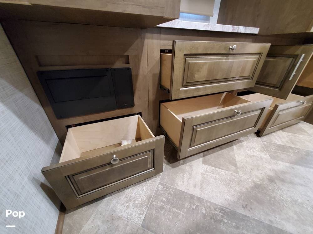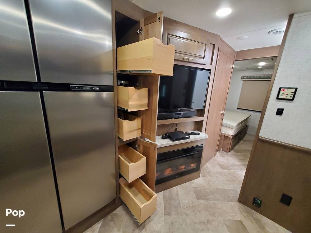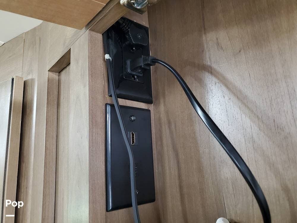 Full body paint. Huge exterior awning. Outside stereo with Bluetooth. Electric steps. Side and rear cameras. Brake controller for your toad. Aluminum wheels. Automatic hydraulic leveling jacks. Solar panels to charge the house batteries. 2000-watt inverter!