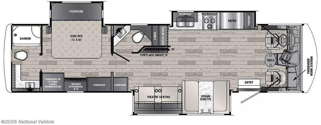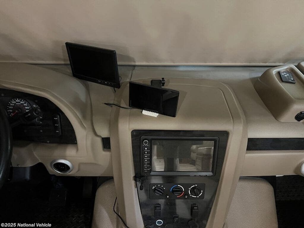 This is the one! Driven, tested and PROVEN in all the lower 48 states. Inside, you'll find a well-appointed kitchen with modern appliances, such as, 3-burner gas stove and full oven as well as a convection microwave, and a 12-cu. ft. stainless-steel gas/electric refrigerator. There is a comfortable living area with a half-bath for guests, theater seating for 2 with a 40? TV and a cozy fireplace. We installed a Sirius XM receiver and antenna in the dash, for TV we use Firesticks on all TV?s (with great success wherever Wi-Fi was available) it has a KING Jack Digital OTA Antenna & Amplifier (When necessary) as well as a Winegard RT2035T RoadTrip T4 In-Motion RV Satellite Dish (DISH, DIRECTV, BellTV) - Fully Automatic RV Satellite Antenna (for true boondocking anywhere). The dinette converts into an additional sleeping space; there is a drop-down Queen-sized bed up front. A master bedroom in back with a King-sized bed and ample storage, a flip-up 32? TV with more storage behind and Washer Dryer combo prep. The master bathroom is equipped with a One-piece fiberglass shower, toilet, and sink, ensuring you have all the comforts of home on the road. Two High output air conditioners and Ducted Heat pump complete the comfort of this RV. Outdoor entertainment center with a 40? TV, AM/FM radio with marine speakers and plenty of storage compartments, equalizer auto leveling jacks, it includes an on board 5500-watt Onan generator and a powerful Triton 6.8L V-10 regular unleaded, engine.
