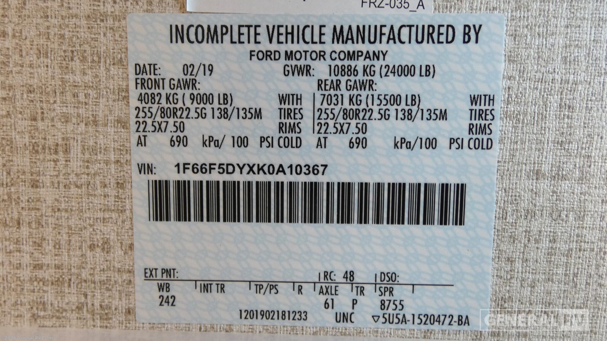 - VIN1F66F5DYXK0A10367