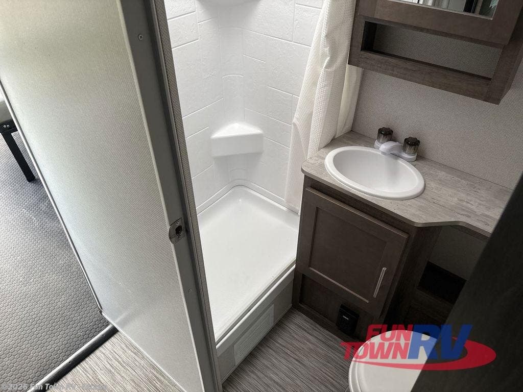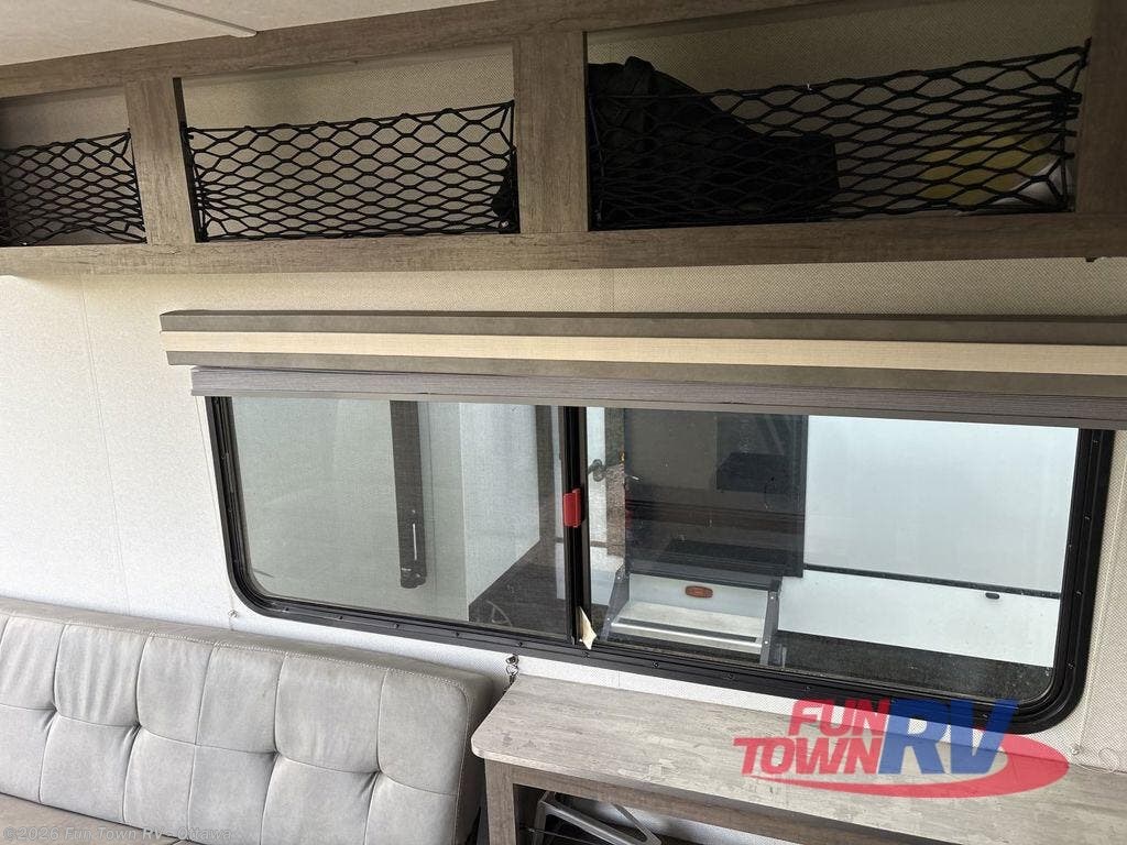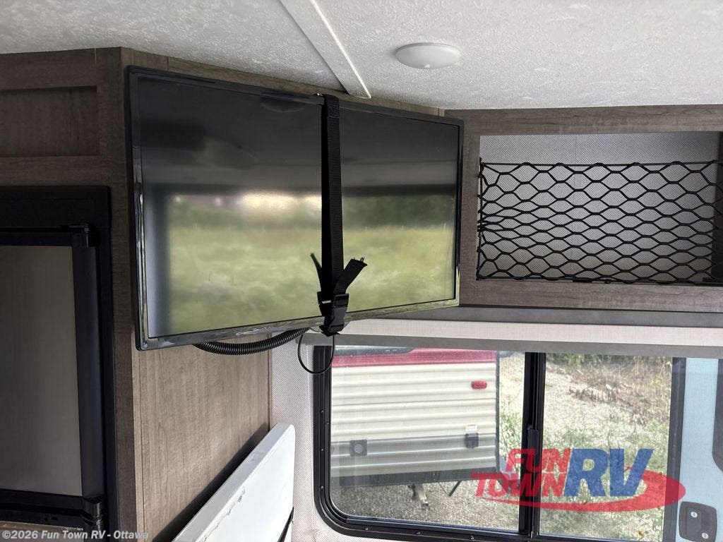 Looking for off-road fun and versatility in your next travel trailer? This toy hauler offers space for your ATV or motorcycles, plus comfortable living accommodations away from the outside elements. You can easily load your toys and gear using the rear ramp door, and you will find plenty of storage space throughout for your food in the pantry and refrigerator, clothing in the wardrobe, and more! When you are tired, you can get cleaned up in the full bathroom before falling asleep on the queen bed up front. There is a fold-up sofa for one more person if you need extra sleeping space, plus options to choose from to add more features. It's time to load up for adventure!