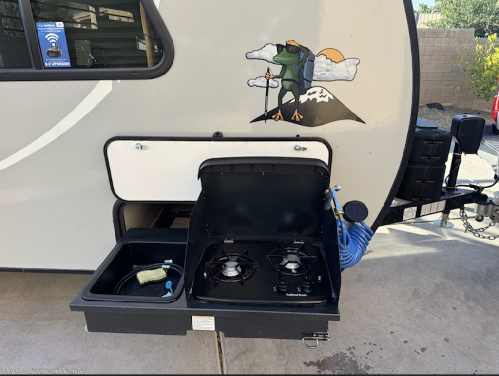 Built with lightweight, aerodynamic construction, this R-Pod is easily towable by a wide range of SUVs and trucks without sacrificing durability or stability. The sleek profile enhances fuel efficiency while delivering a smooth towing experience. Outside, enjoy a power awning for shaded relaxation, exterior storage for all your gear, and rugged construction built for long-term reliability.