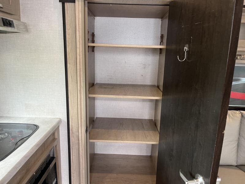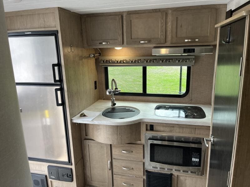 Features Include: Aluminum Entry Step, Entry Door Window, Vinyl Flooring, Vinyl Furniture, Pantry, Stainless Steel Sink, Refrigerator, 2-Burner Stove, Systems Center, Entertainment System, Queen or Murphy Bed, Aluminum Bed Base, Solar Prep, 55-Amp Converter, 20# LP Bottle, 12v Water Pump, Aluminum Wheels, Azdel Laminate, Power Tongue Jack, Stabilizer Jacks