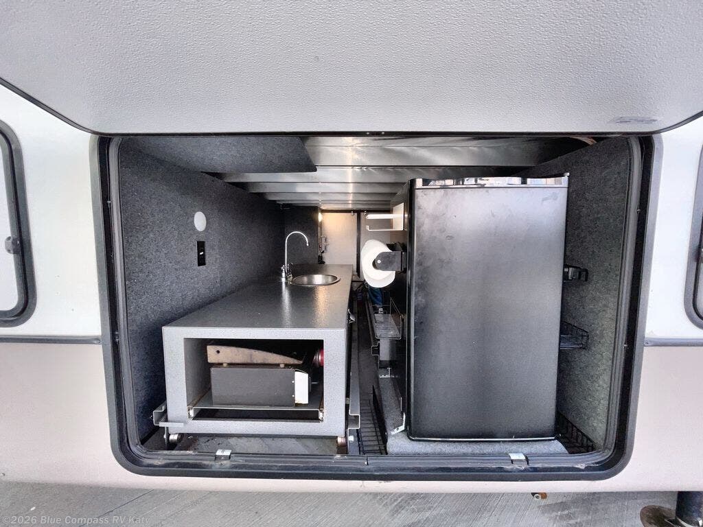 You will be completely amazed when you step foot into this Salem Hemisphere Elite fifth wheel! The chef of the family will love the open residential kitchen that includes a large pantry, a 22 cu. ft. refrigerator, plus a breakfast bar with swivel bar stools where the kids can eat their cereal at. The front living area is spacious with its dual opposing slides, and you'll find plenty of seating space on the two tri-fold sofas or on the theater seating. Mom and dad will feel right at home in the master bedroom that includes an Elite extra-wide bed slide, a full bath with a walk-in shower, plus plenty of storage space. This model also includes an Elite outdoor bar and entertainment center that includes an ice maker, a wine/beverage fridge, a griddle, plus a 32" TV!