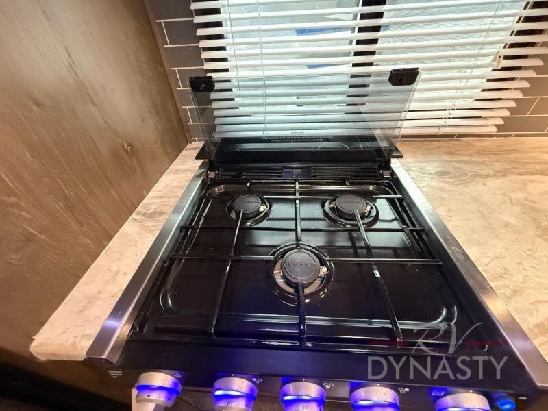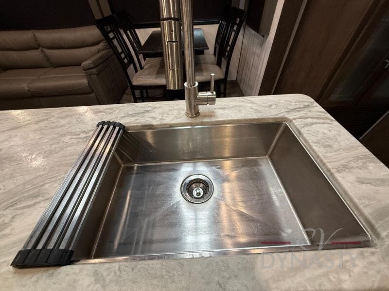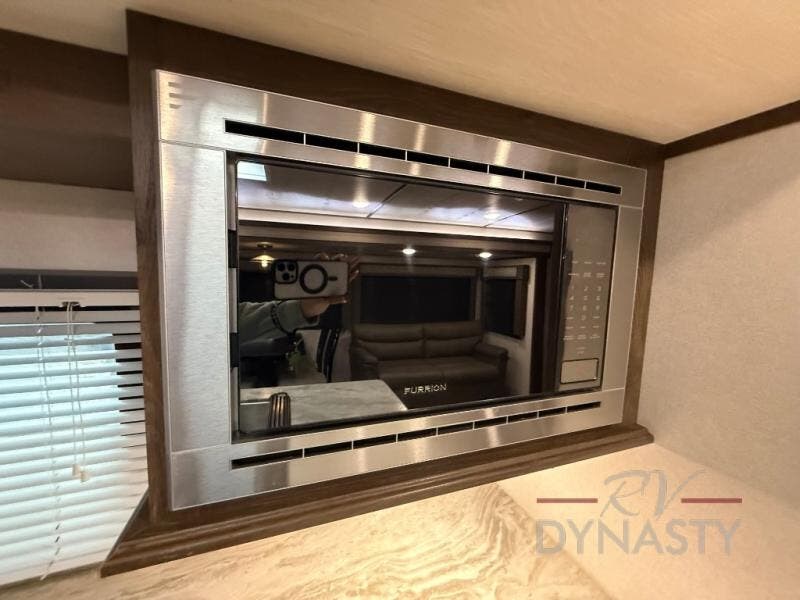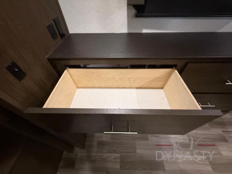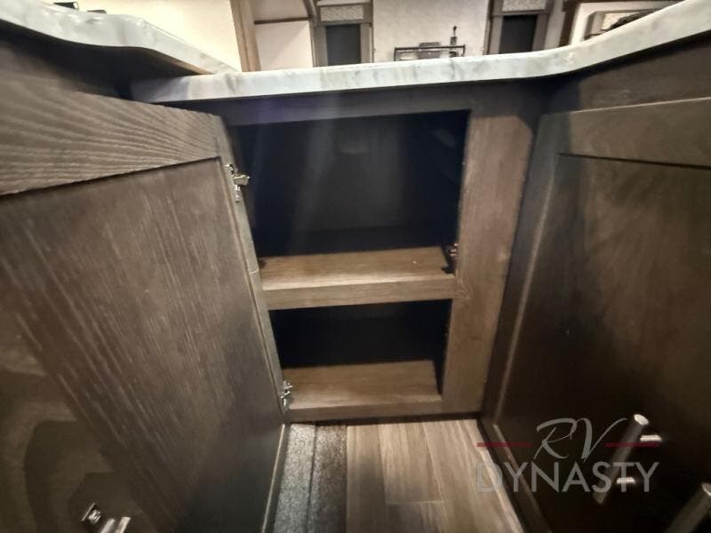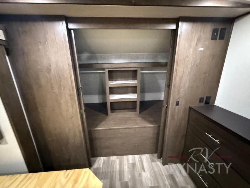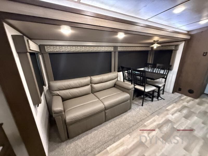 Are you ready to make plenty of memories with your family? Just imagine triple slide outs offering plenty of floor space in the main living and kitchen area, plus in the master bedroom. Along the rear wall there is an entertainment center with an LED HDTV and fireplace below to watch while sitting on the tri-fold sofa or in the theater seats. You can easily visit with your family while whipping up your favorite meals in the full kitchen with plenty of counter space. In the front bedroom you will enjoy a custom king bed, nightstands, a dresser, and a large walk-in wardrobe with sliding doors. Take a look!