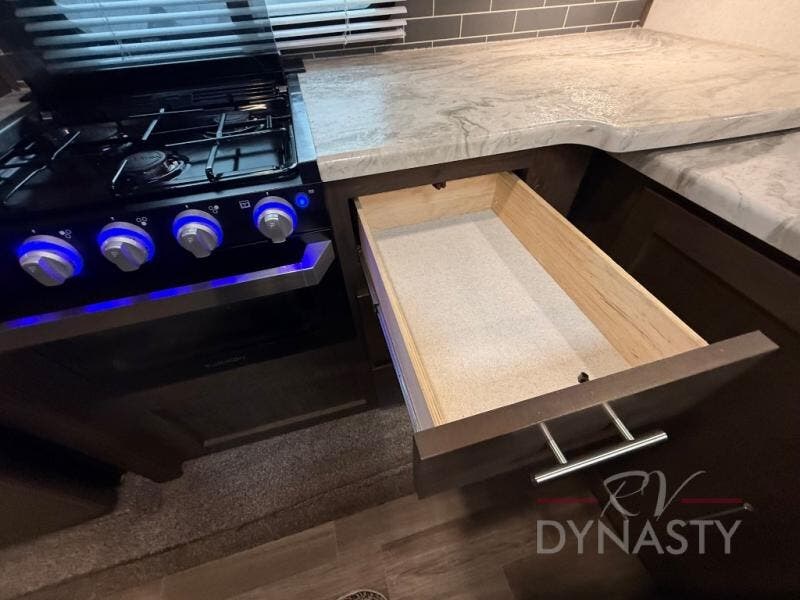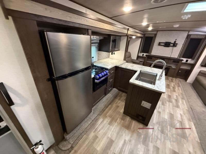 When you want time away from home without leaving the comforts behind, then choose a Salem Hemisphere GLX travel trailer by Forest River. These models have plenty of residential features such as a stainless steel double door refrigerator, an under-mount sink, stain resistant carpet and Shaw Guardian hickory way linoleum. Along the exterior you will find an aerodynamic front cap with LED light strip, a gel coated fiberglass exterior, and marine grade exterior speakers with a blue LED light. The One Touch electric awning provides plenty of shade and allows you to instantly have a nice outdoor living space. Choose your favorite layout today!