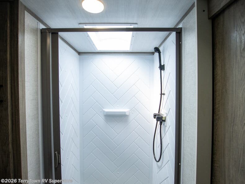You will love the comfortable reclining sofa and U-shaped dinette for plenty of seating while inside this Salem Hemisphere Hyper-Lyte travel trailer, and the view through the huge panoramic windows will certainly bring the outdoors inside to you allowing you to enjoy the outdoors even more! A large pantry makes it easy to stock up on goodies for your trip, and with the large slide, you will find your living space to be quite comfortable when moving about. Even the walk-through bath provides ample space and includes a walk-in shower with skylight for more natural lighting as well. A comfortable RV queen bed awaits your arrival each night allowing you to recharge for a new day of adventure.