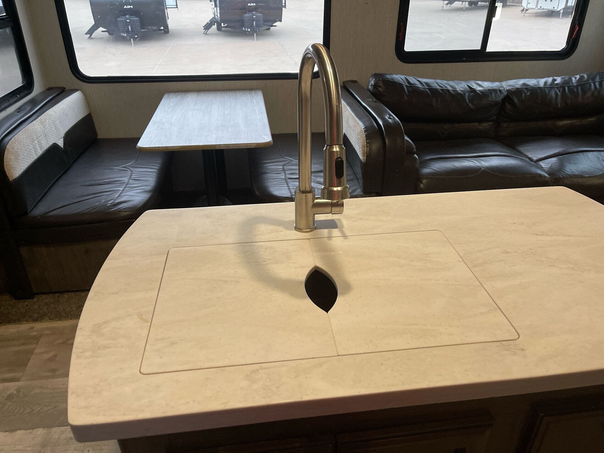 The 383RBLOK floorplan emphasizes space without compromising comfort. With four slide-outs, the interior expands to accommodate large groups, making it ideal for family getaways or group trips. The Sandpiper’s layout focuses on convenience and livability, supported by two 15,000 BTU air conditioners to maintain a comfortable climate in any season.